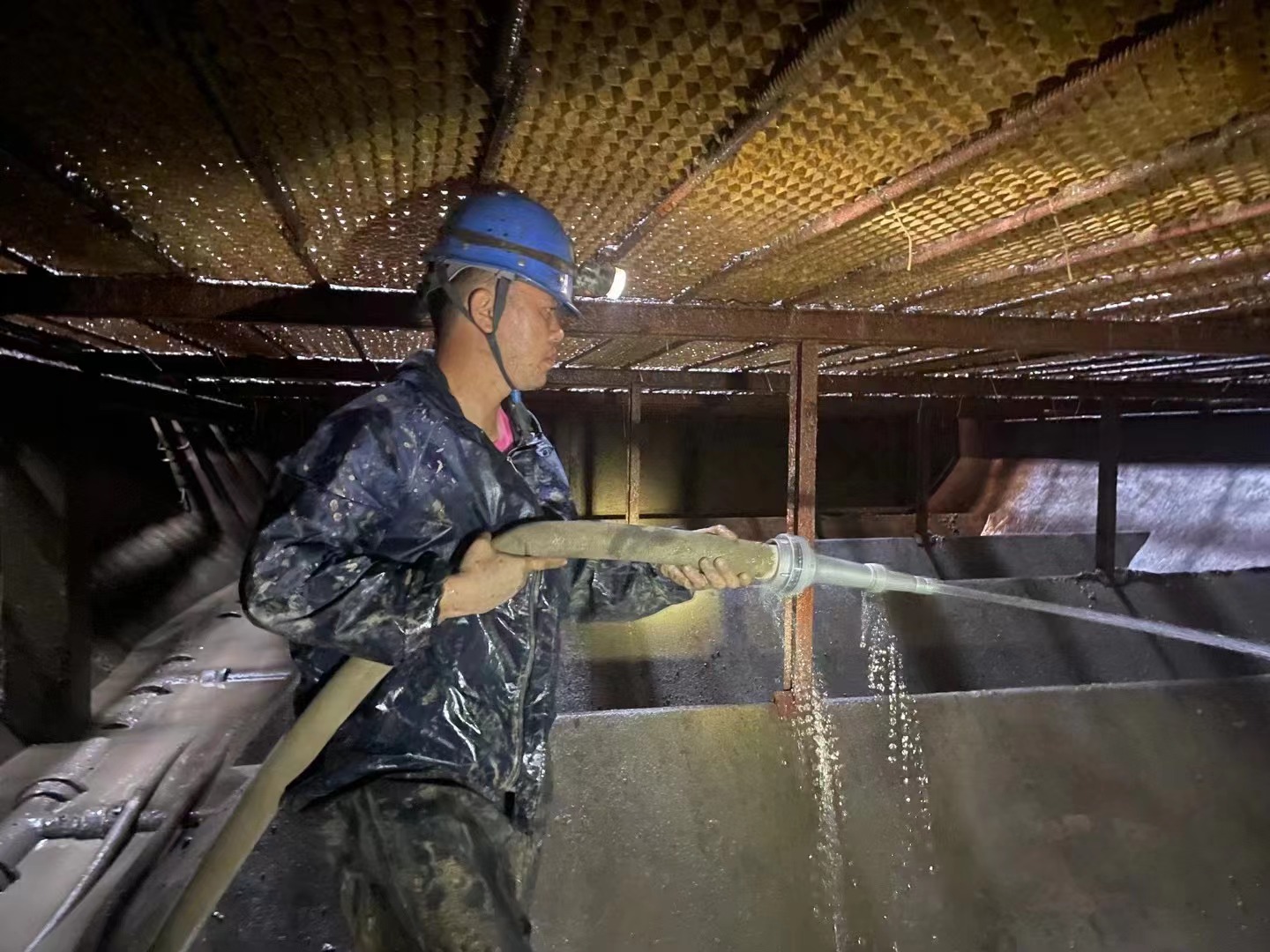 在清洗水池時,同志們往往要面對許多困難和挑戰(zhàn)。水池中的污垢和泥沙不僅難以清理,而且還有難聞的氣味。清洗過程中,由于里面的污泥較厚,大家穿著下水衣在水池底下行動很不方便,還要將里面的污泥用鐵鍬和袋子一點(diǎn)點(diǎn)的清理出來,在時間緊任務(wù)重,工作難度高的情況下,幾乎沒有休息時間,同志們克服了身體的勞累,工作環(huán)境的局限和里面的潮濕,經(jīng)過了辛苦勞動,很快的將泥沙送入排污管道內(nèi)。大水池下,王冠和吳濤身著下水衣,用噴水槍清洗水池四壁的水垢和沉淀物,認(rèn)真刷洗著每個角落,確保水池清洗不留死角,渾身被水浸濕也全然不顧,現(xiàn)場嚴(yán)格按照相關(guān)規(guī)定,依照流程有序操作,整個清洗過程進(jìn)展順利。