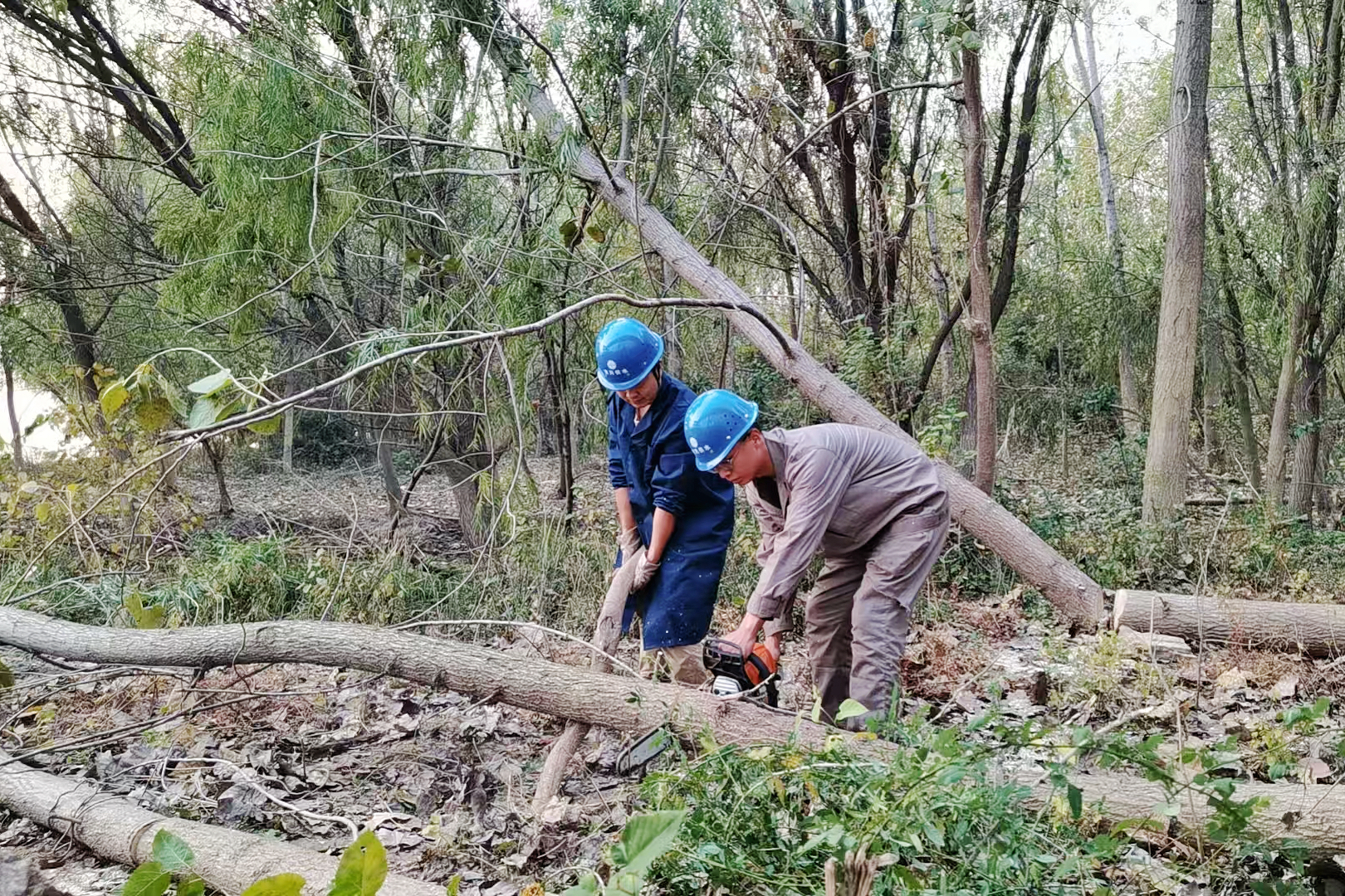 首先,我們的機修團隊和電工團隊需要對樹木進行評估,包括其高度、直徑、傾斜程度以及周圍的環(huán)境。樹木是否有電線或其他障礙物,以確保砍樹過程的安全。接著,選擇合適的工具,如果樹木較大,可能還需要用到鏈鋸。而且在使用工具之前,要檢查其是否完好,鋒利度是否足夠。過程中,需要時刻注意自己的人身安全,保持穩(wěn)定的站立姿勢,避免被掉落的樹枝砸到。經(jīng)過一天的時間,船泵值守附近的枯草樹木被砍伐得干干凈凈。