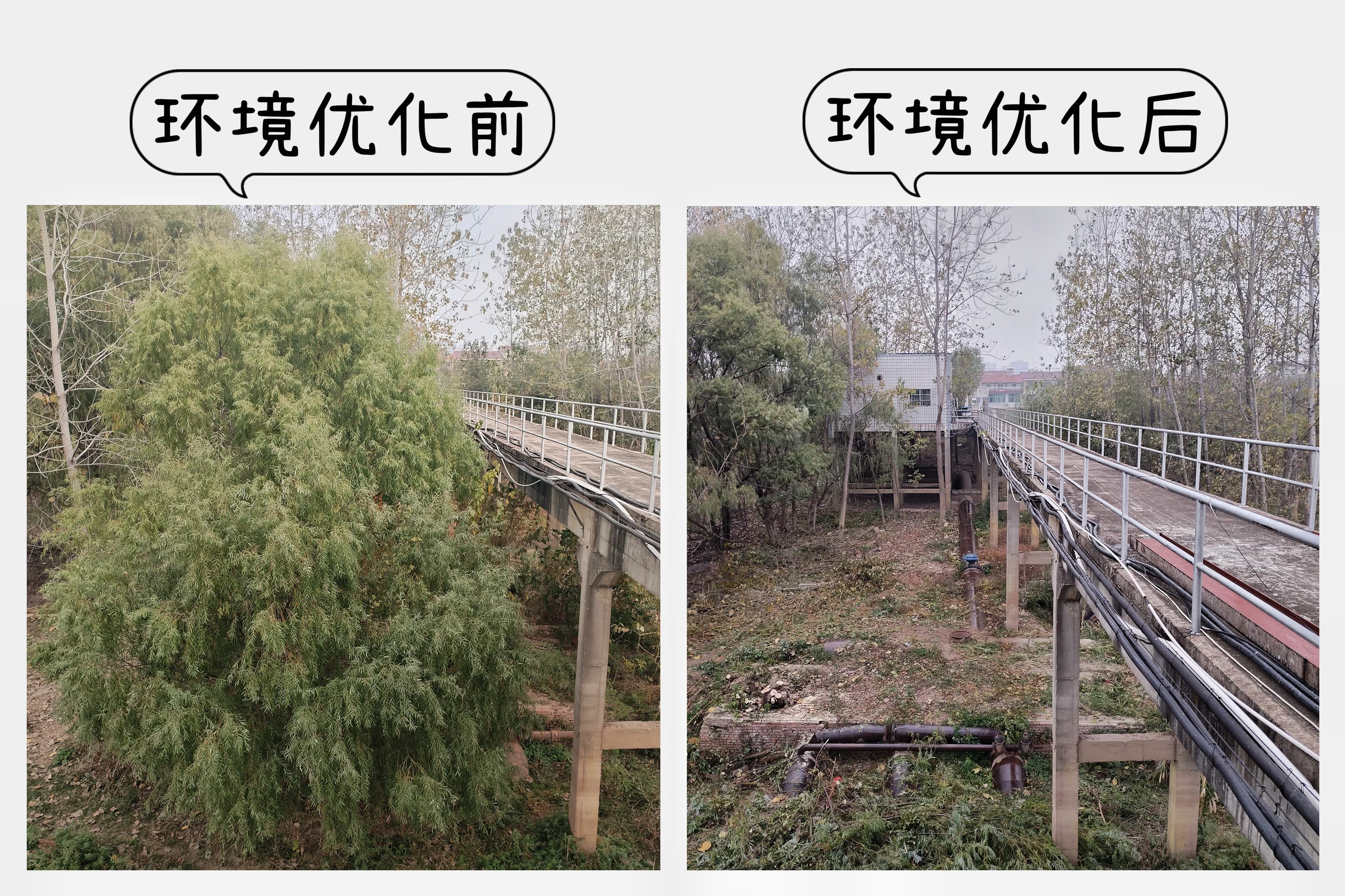 12月3日,三水廠開展了一系列環(huán)境優(yōu)化工作,對江邊船泵值守附近和廠區(qū)內(nèi)存在安全隱患的枯草樹木進行了有序的砍伐及清理。