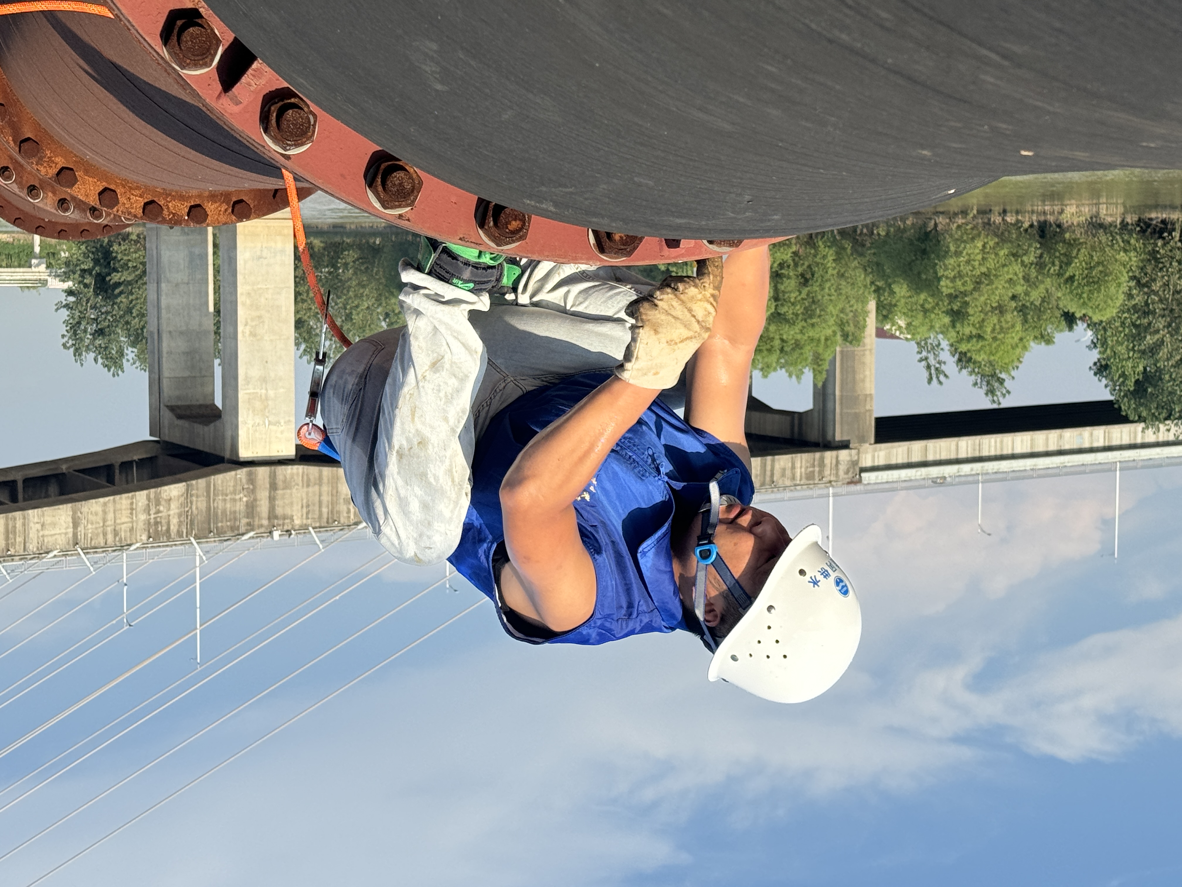 市自來(lái)水公司檢修員對(duì)三水廠(chǎng)取水管道進(jìn)行加固。(通訊員 楊珊 攝)