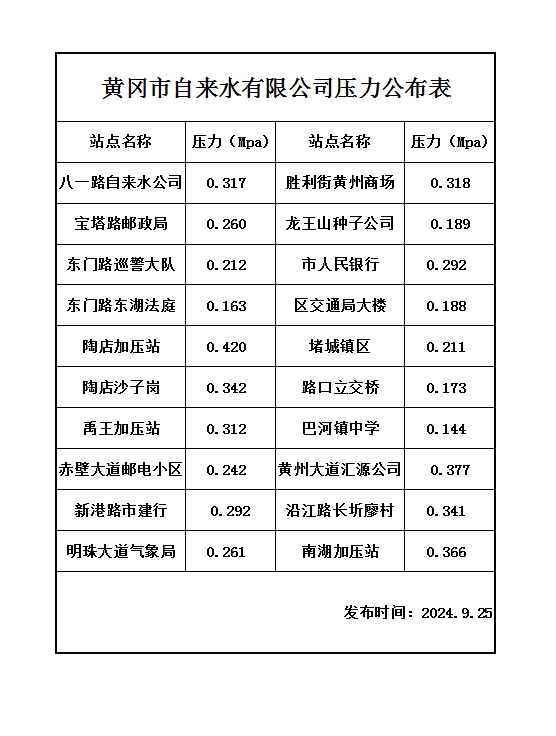 2024年09月25日水壓日報表