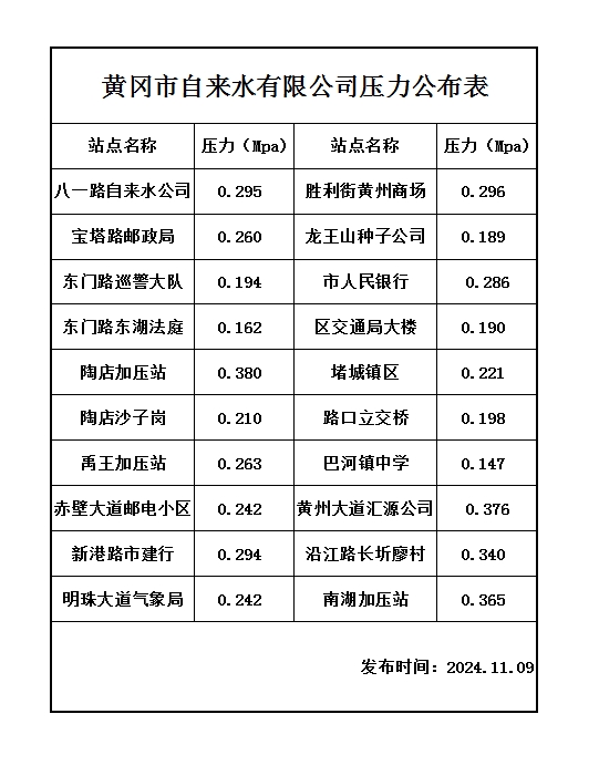 2024年11月9日水壓報告表