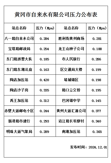 2024年12月01日水壓報告表