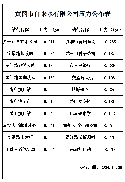 2024年12月30日水壓報告表