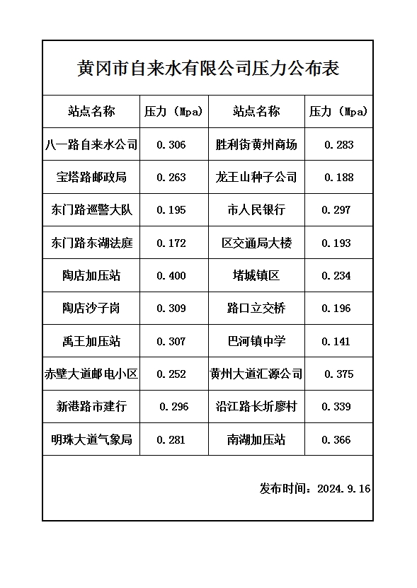 2024年09月16日水壓日?qǐng)?bào)表