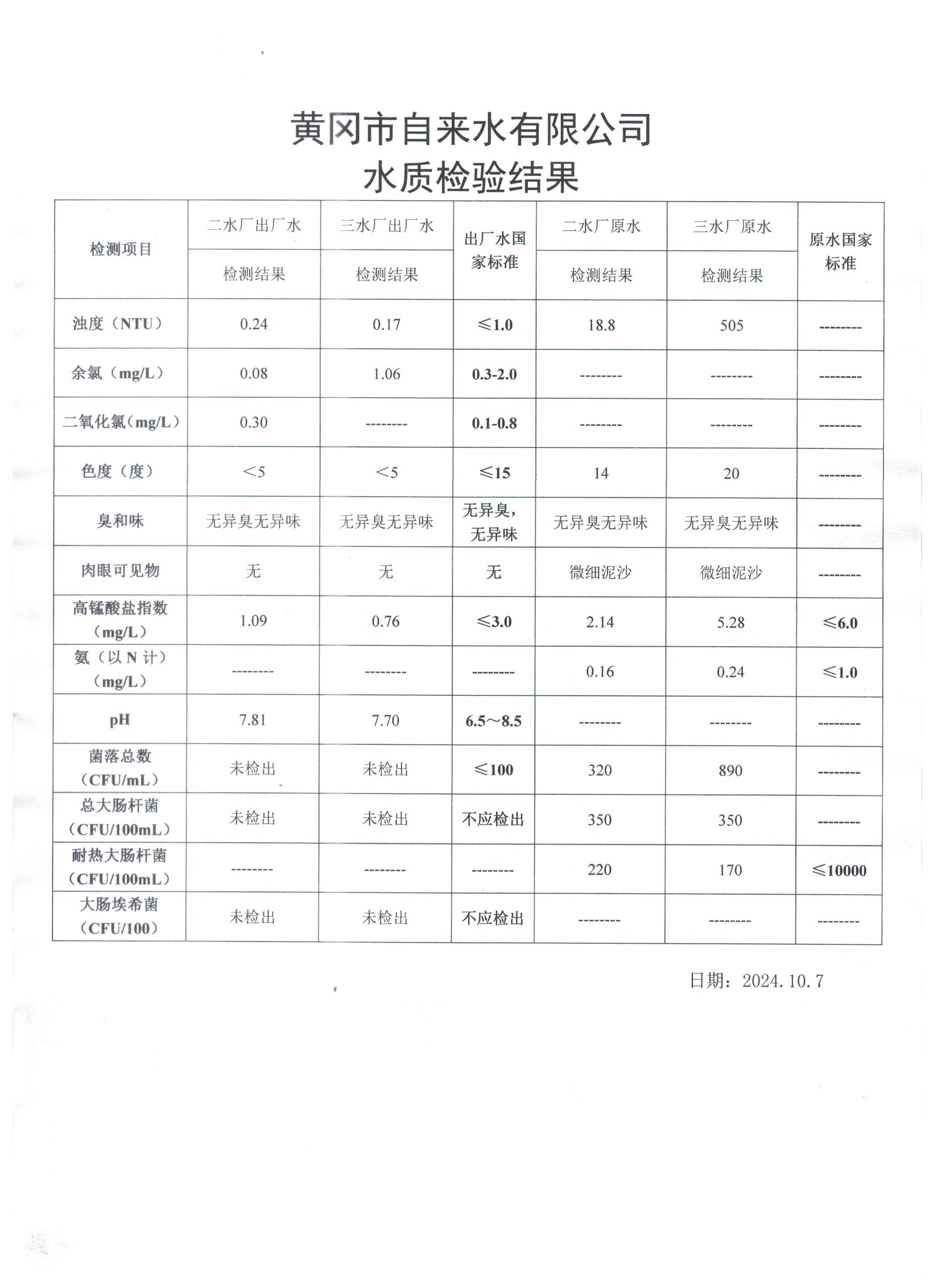2024年10月7日水質(zhì)檢測(cè)日?qǐng)?bào)表