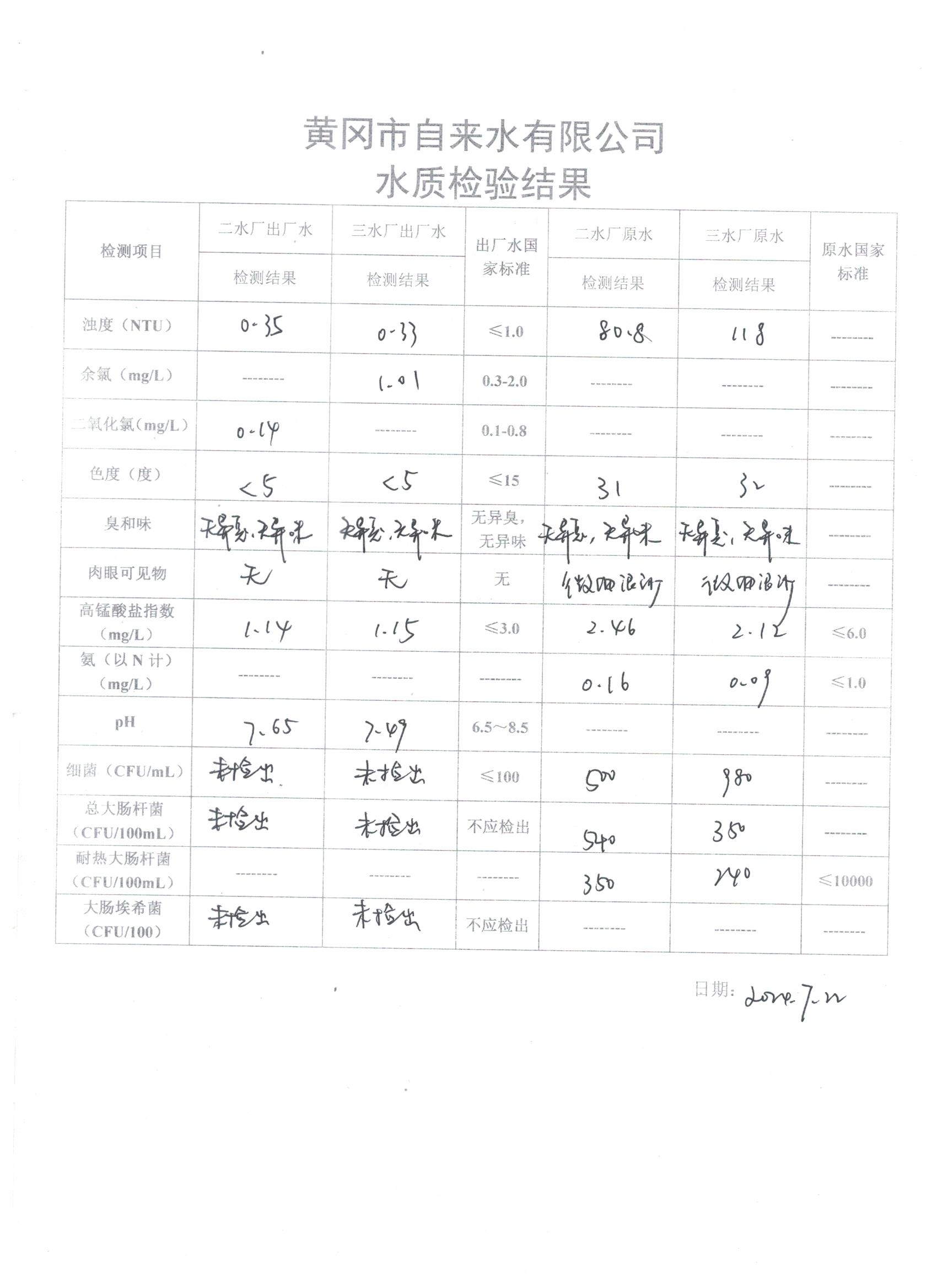2024年7月22日水質(zhì)檢測(cè)日?qǐng)?bào)表