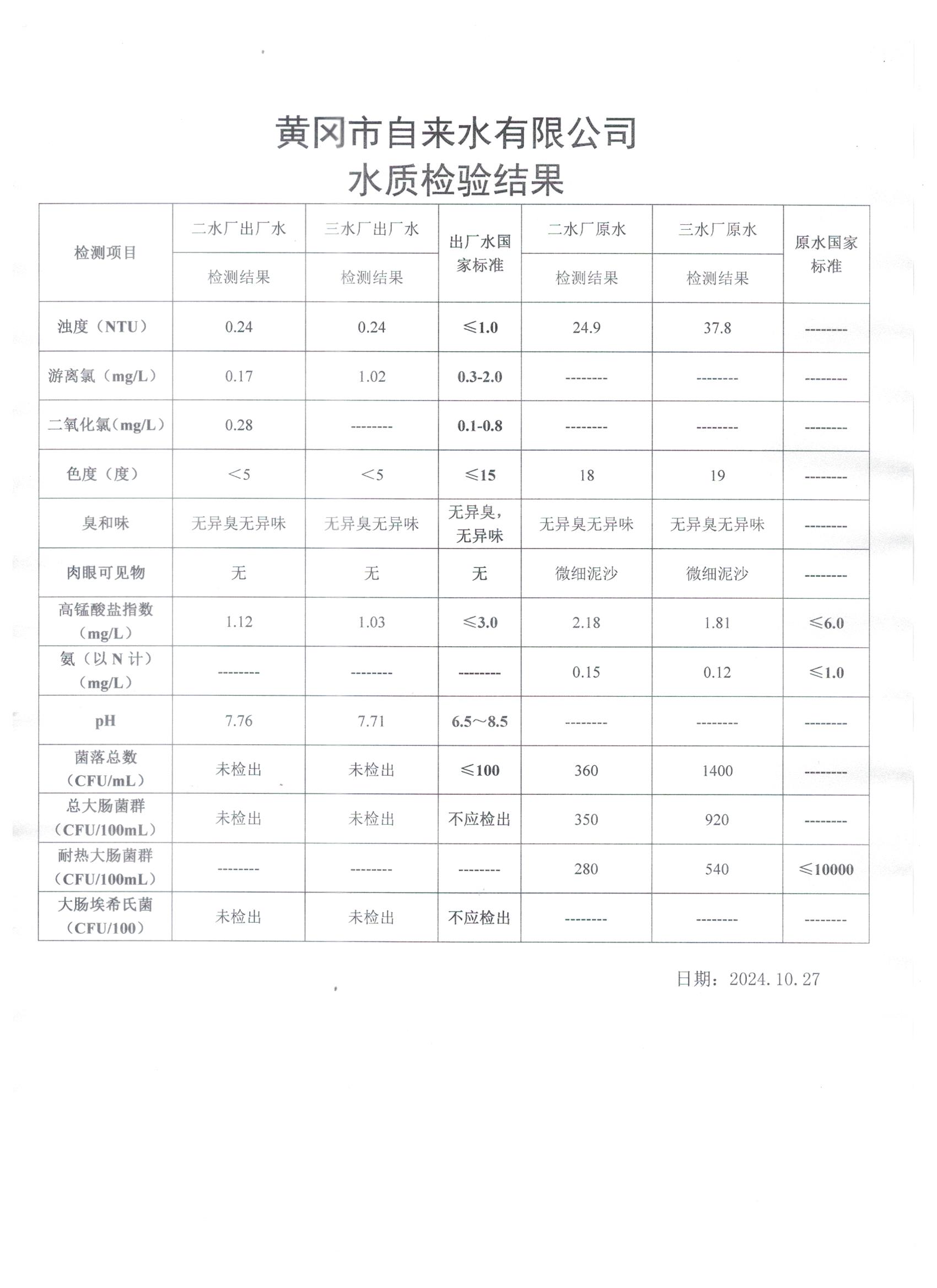 2024年10月27日水質(zhì)檢測(cè)日?qǐng)?bào)表