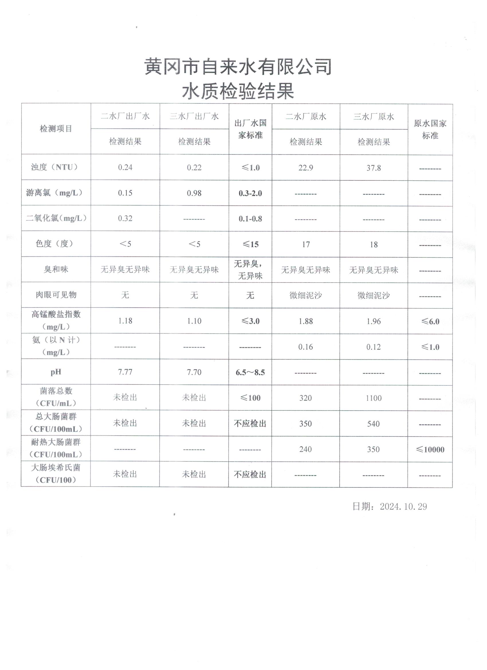 2024年10月29日水質(zhì)檢測(cè)日?qǐng)?bào)表