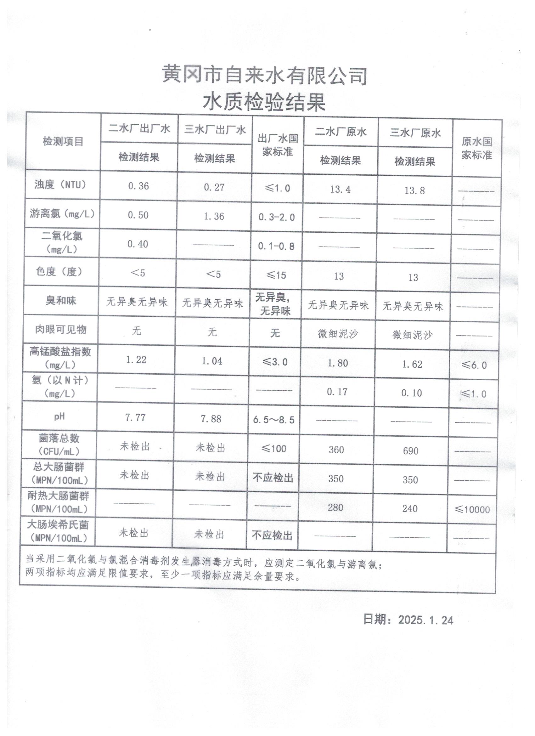 2025年1月24日水質(zhì)檢測(cè)日?qǐng)?bào)表