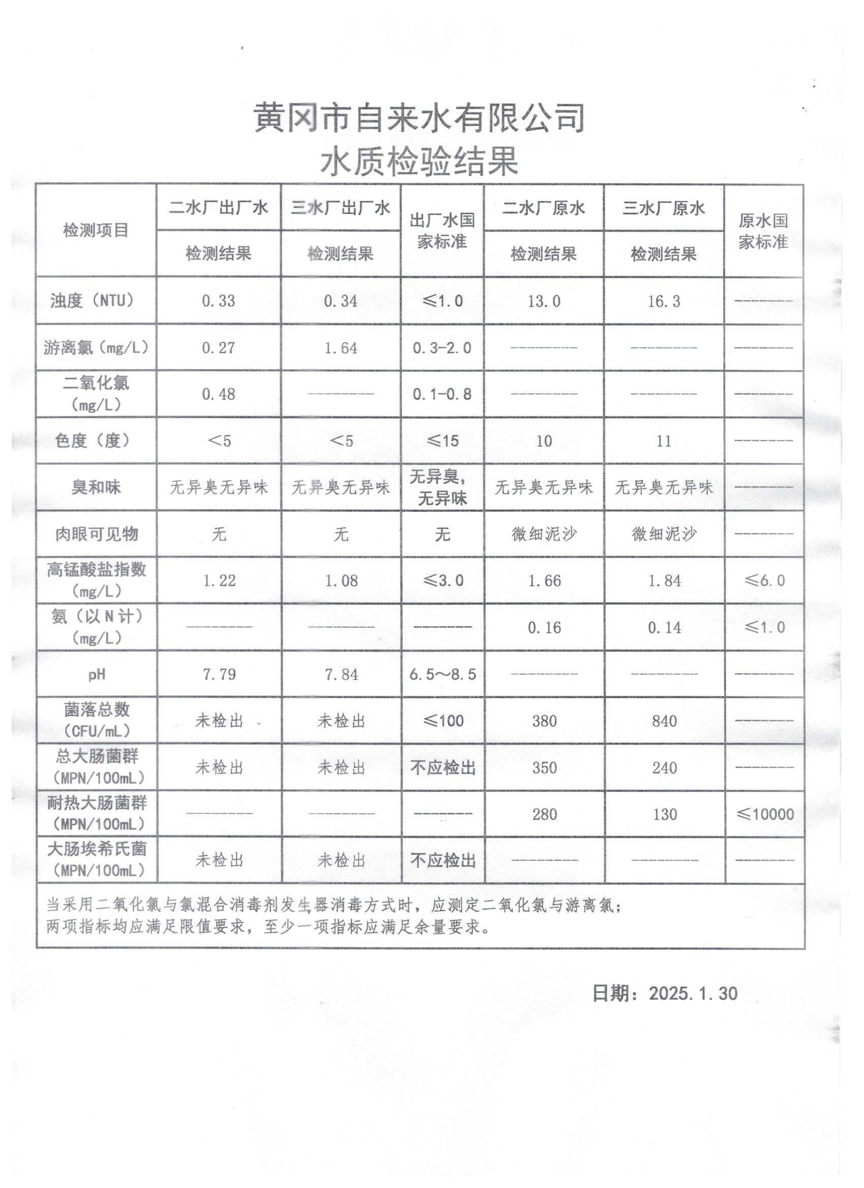 2025年1月30日水質(zhì)檢測日報(bào)表