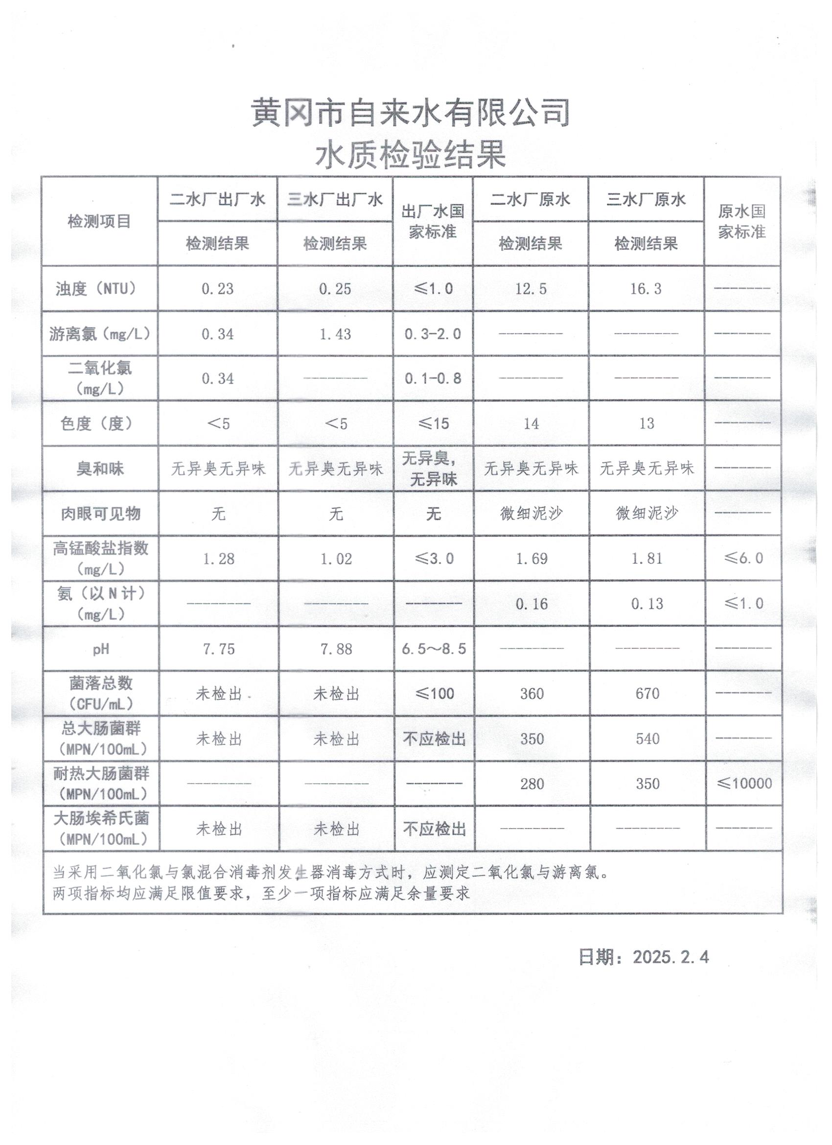 2025年2月4日水質(zhì)檢測(cè)日?qǐng)?bào)表