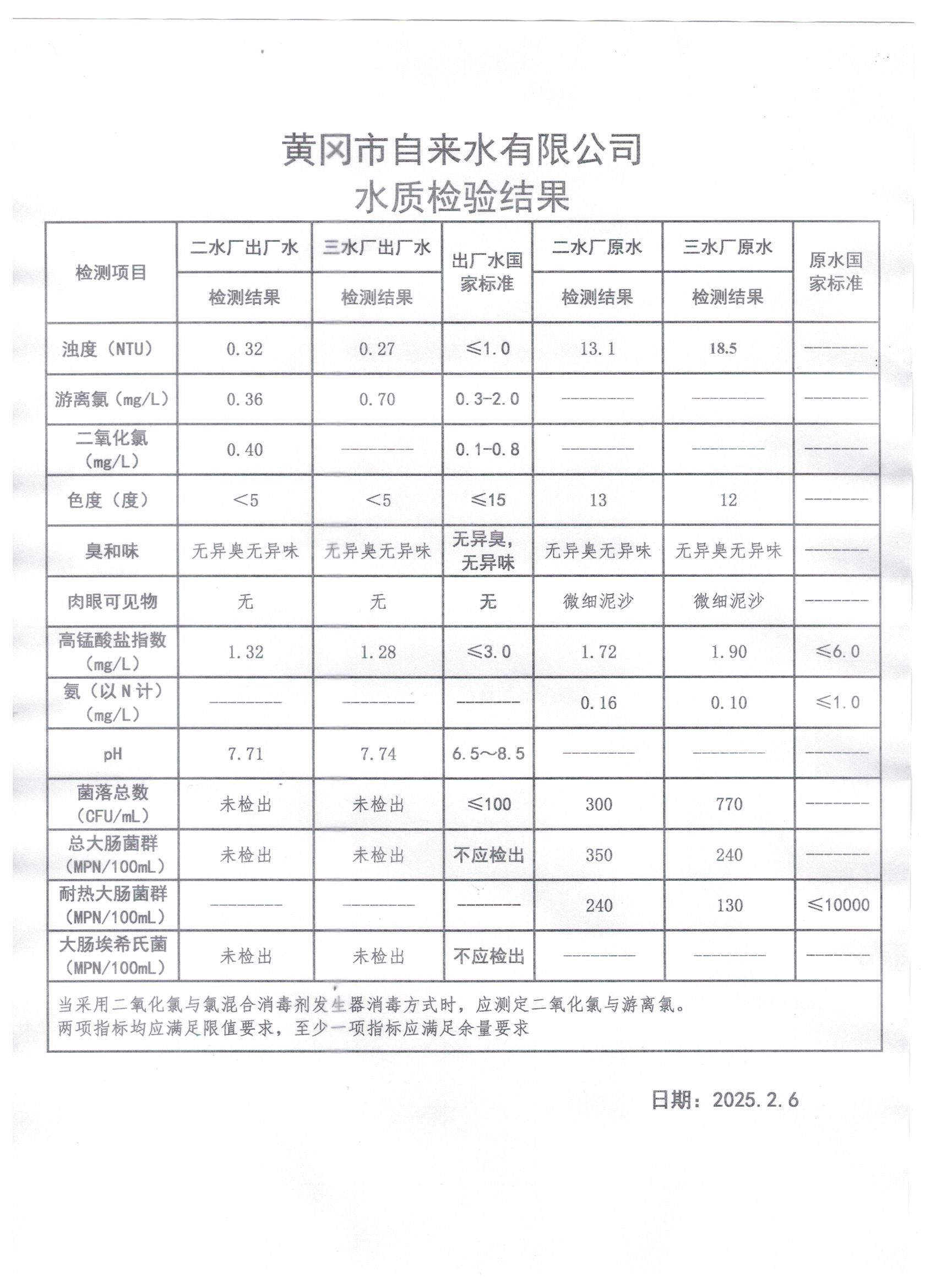 2025年2月6日水質(zhì)檢測日報表