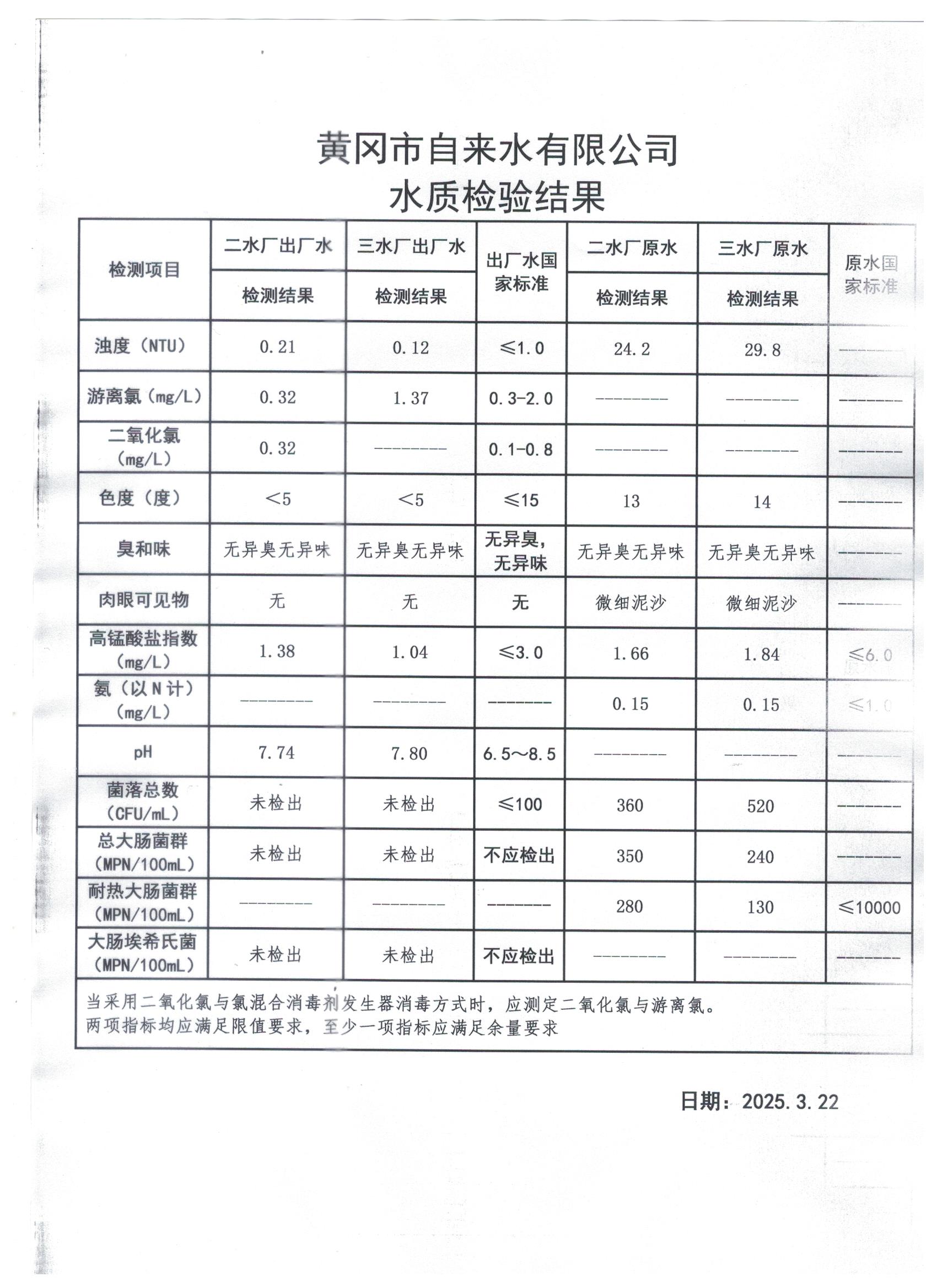 2025年3月22日水質(zhì)檢測(cè)日?qǐng)?bào)表