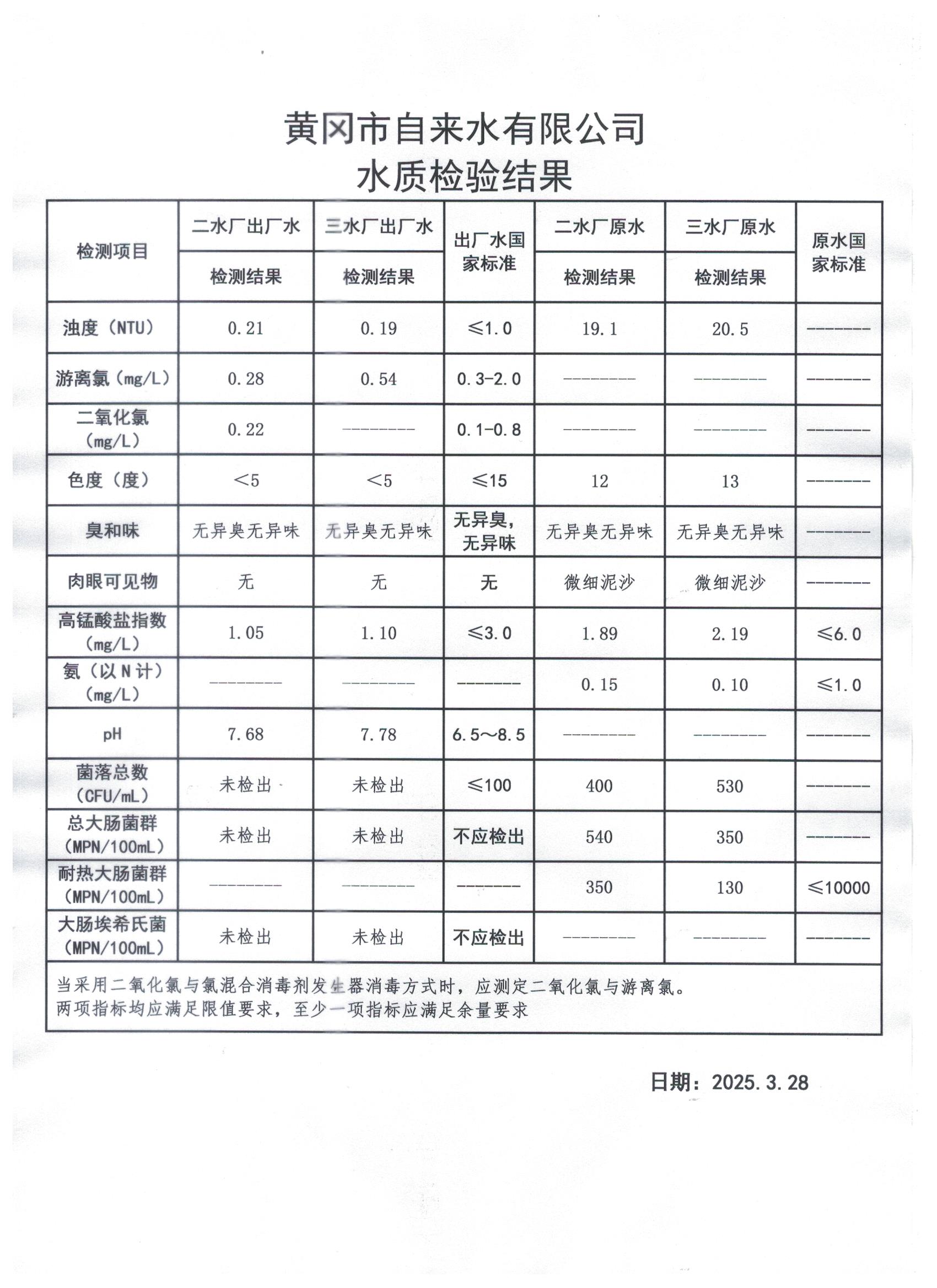 2025年3月28日水質(zhì)檢測(cè)日?qǐng)?bào)表