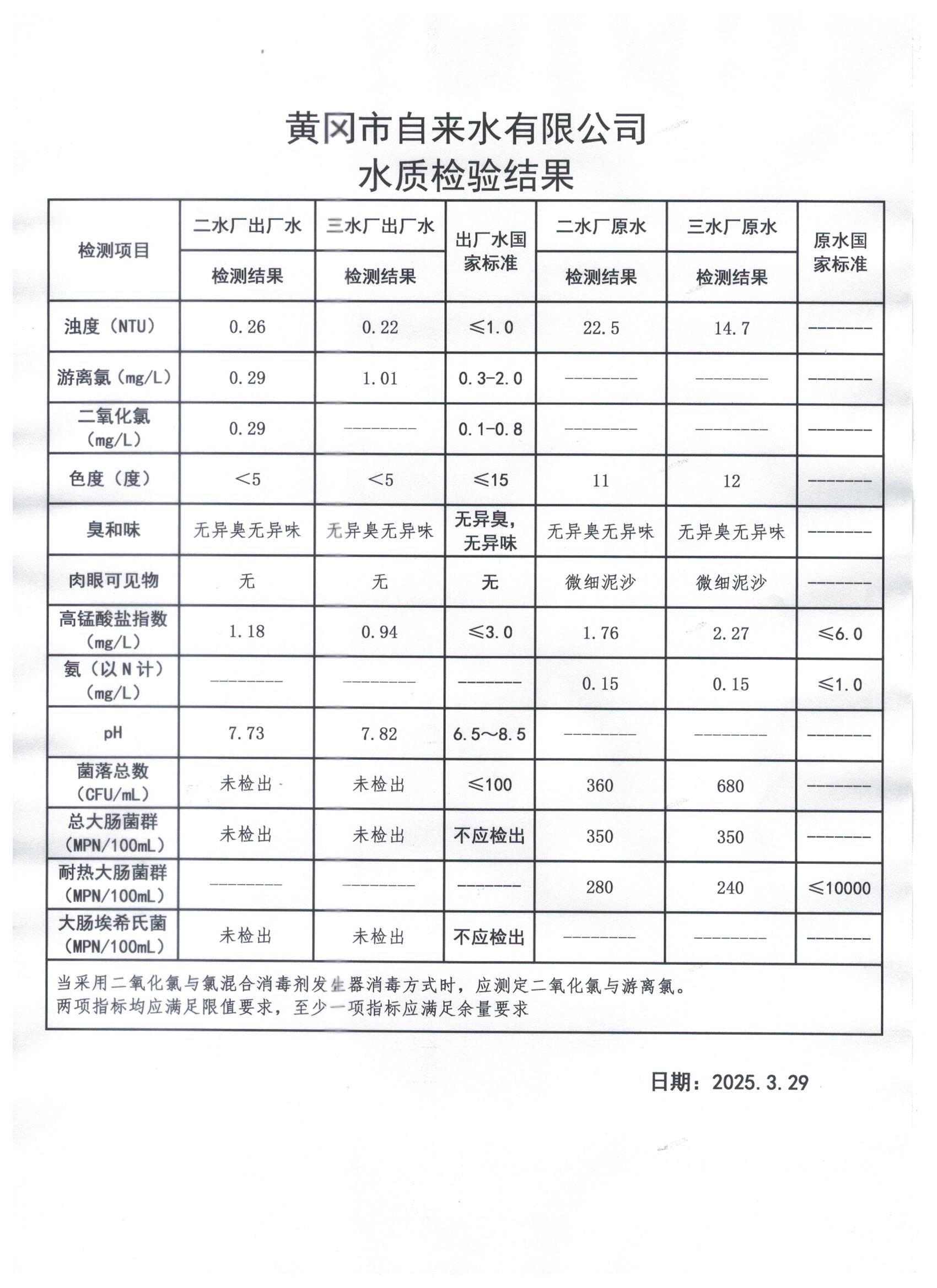 2025年3月29日水質(zhì)檢測日報(bào)表