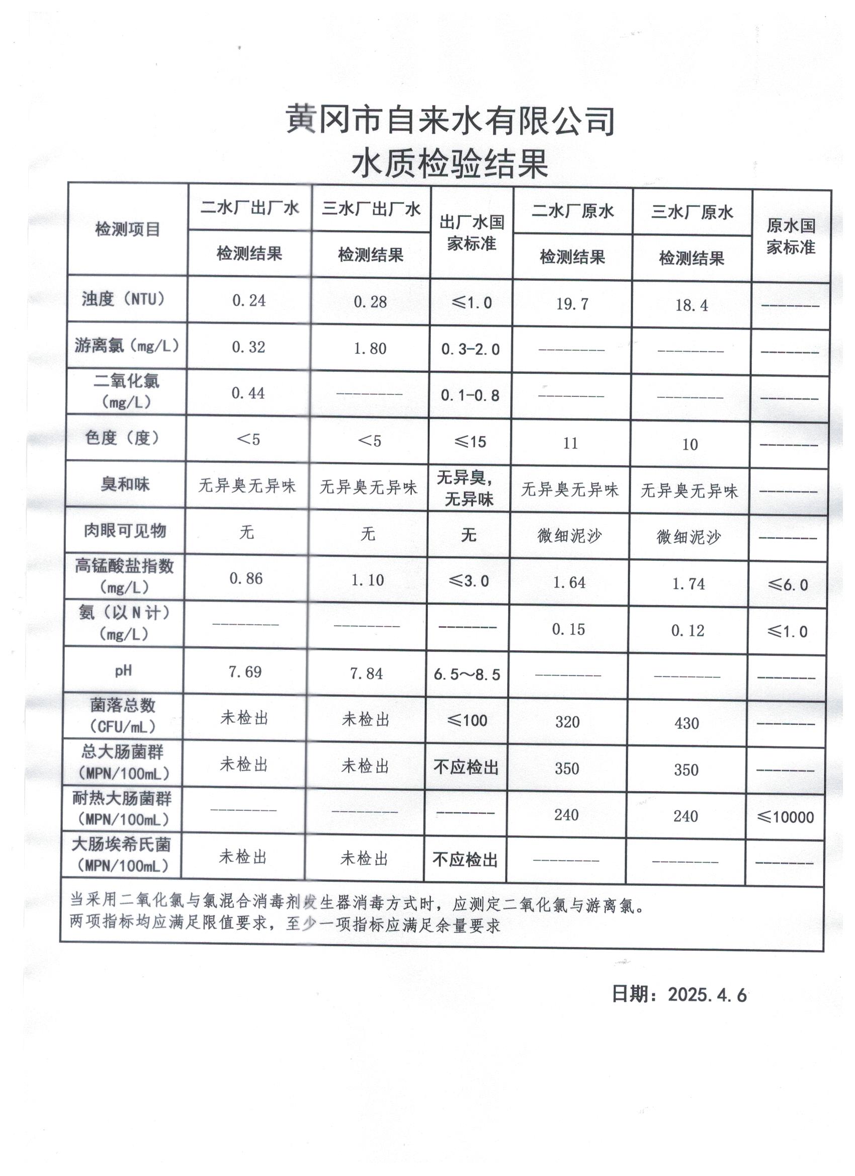 2025年4月6日水質檢測日報表