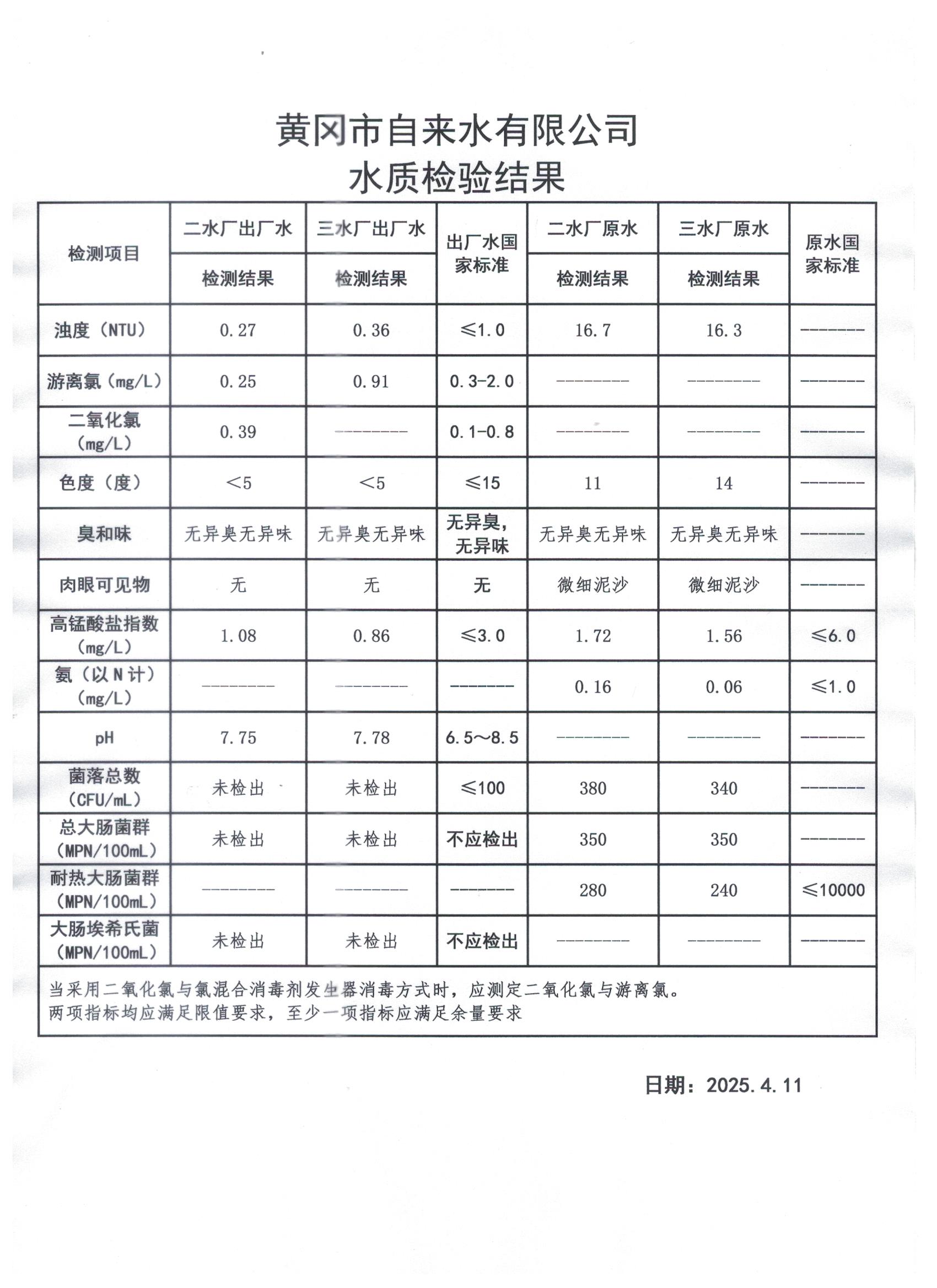 2025年4月11日水質(zhì)檢測(cè)日?qǐng)?bào)表