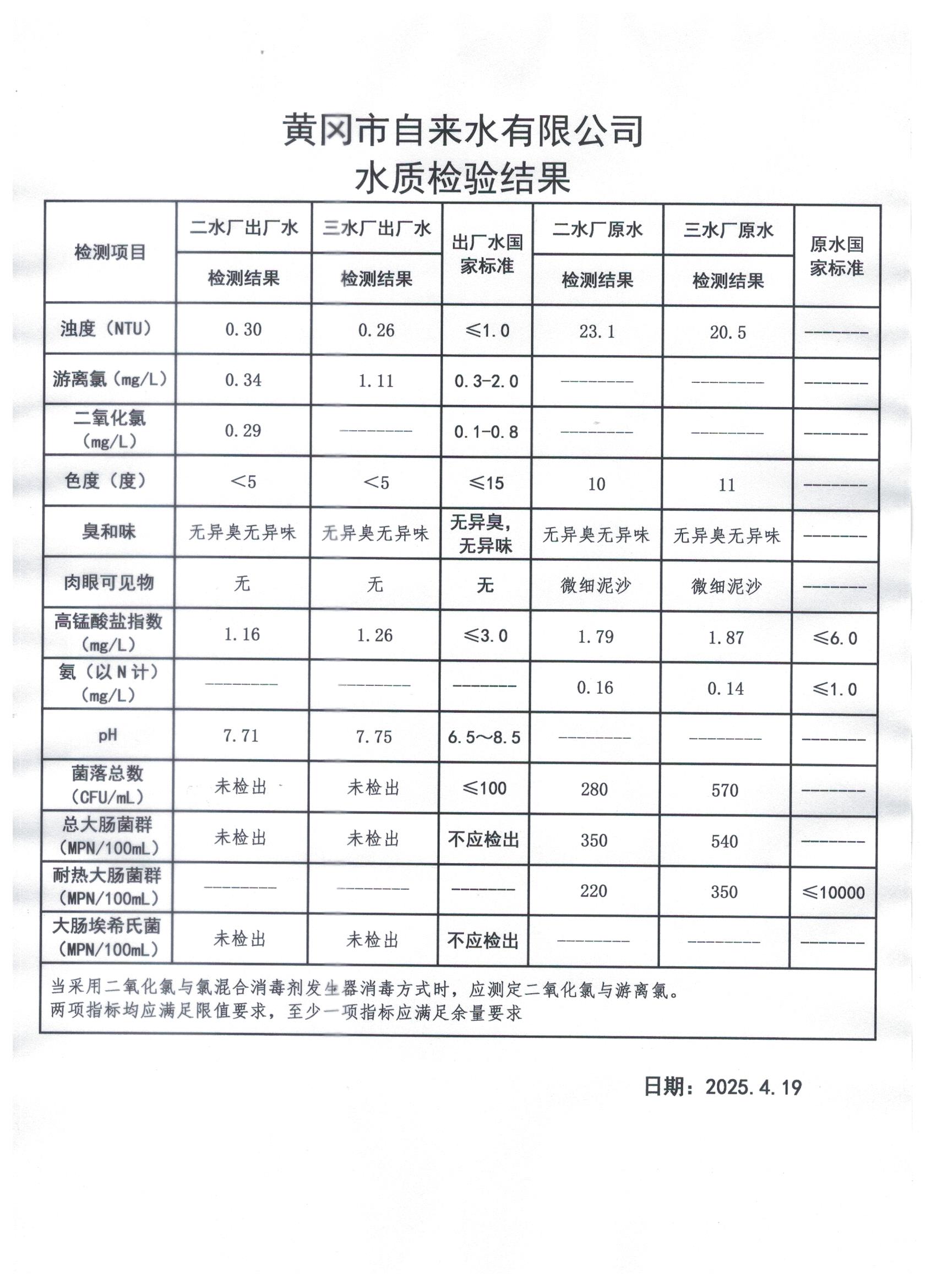 2025年4月19日水質(zhì)檢測(cè)日?qǐng)?bào)表