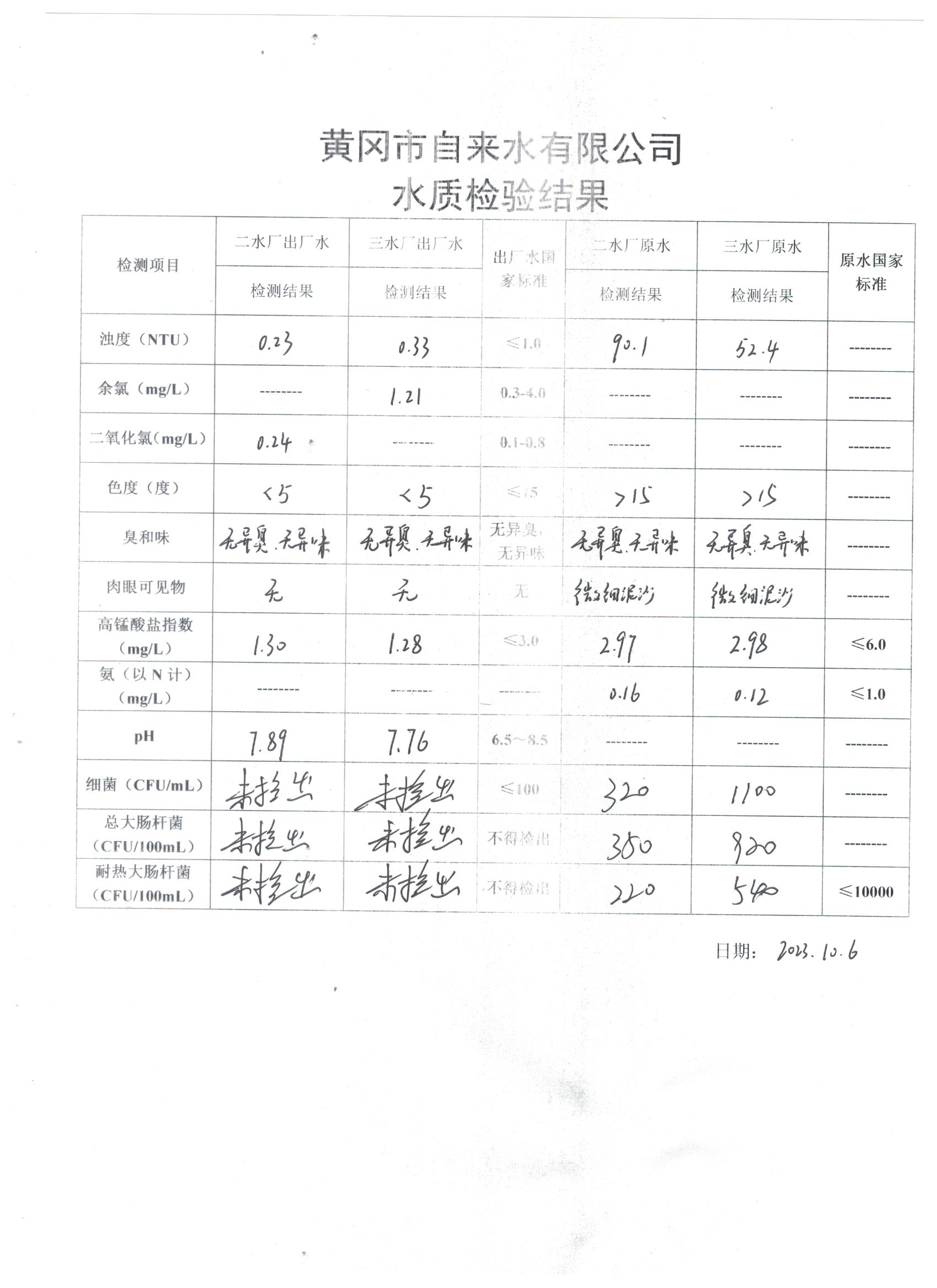 2023年10月6日水質(zhì)檢驗(yàn)日報表