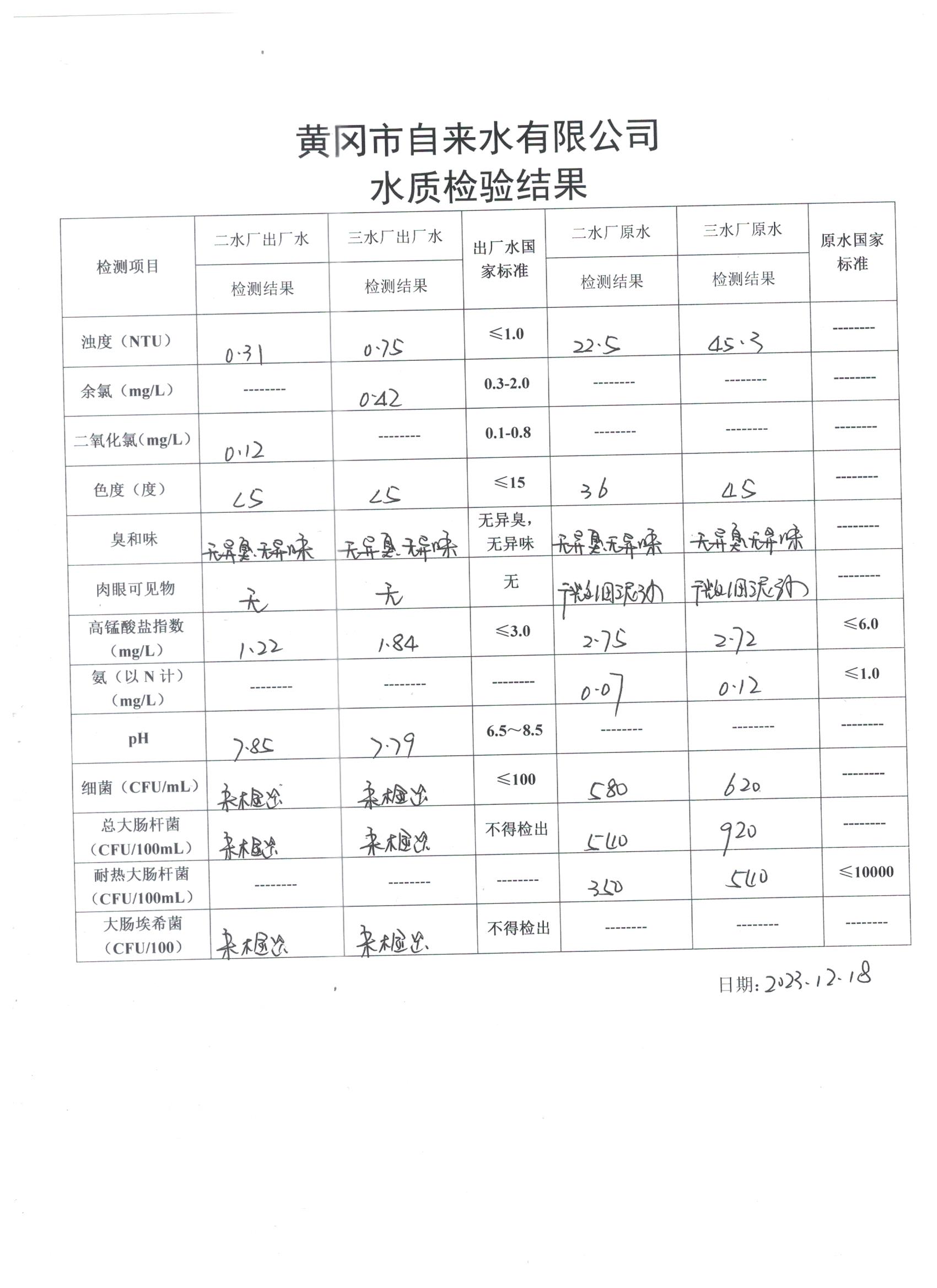 2023年12月18日水質(zhì)檢驗(yàn)日?qǐng)?bào)表