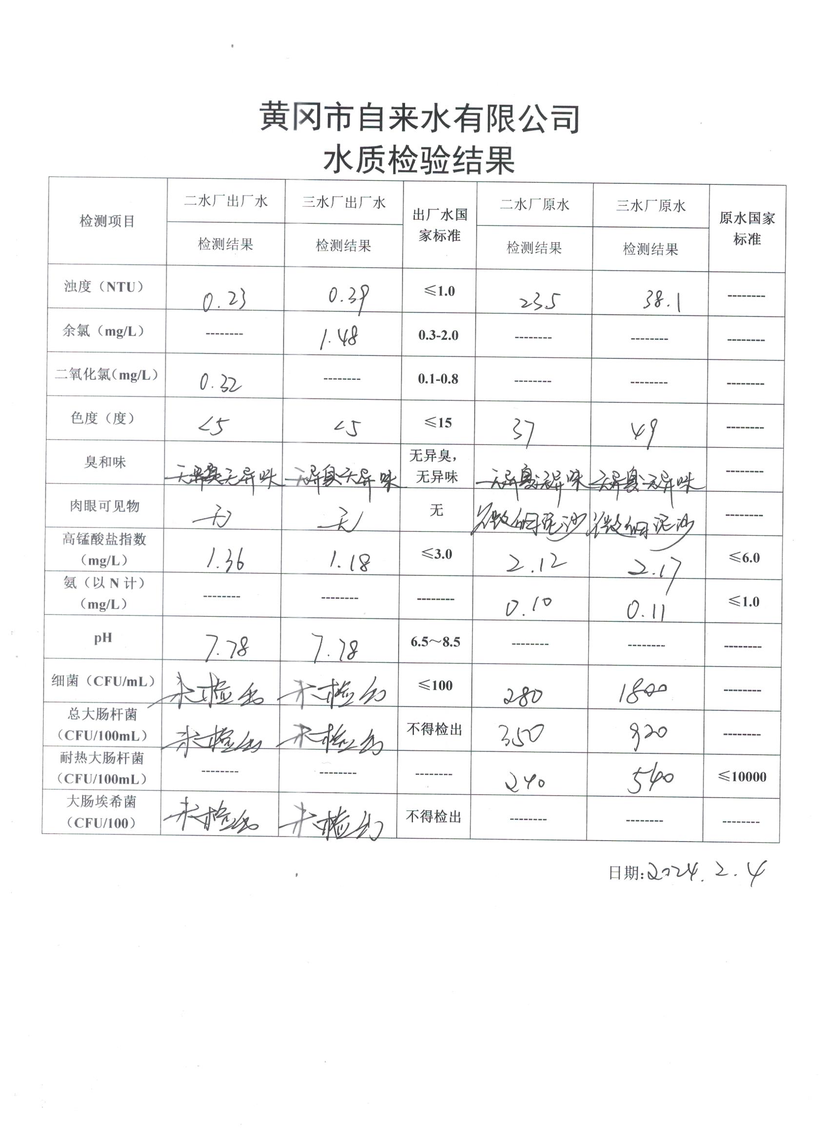 2024年2月4日水質(zhì)檢驗(yàn)日?qǐng)?bào)表