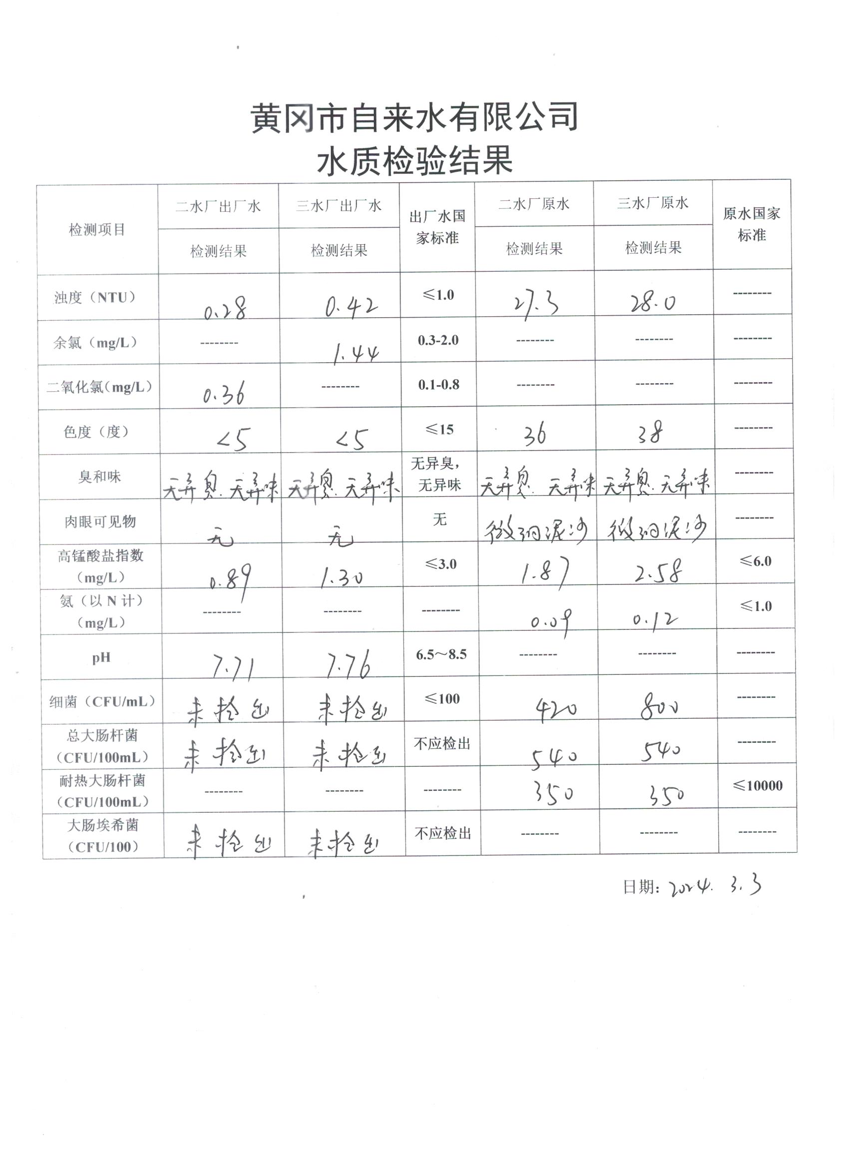 2024年3月3日水質(zhì)檢驗(yàn)日?qǐng)?bào)表
