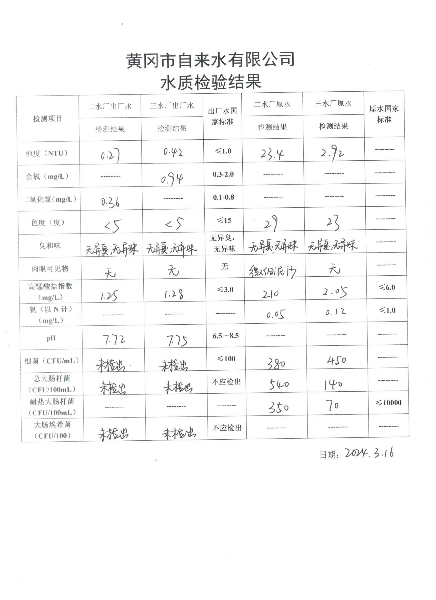 2024年3月16日水質(zhì)檢驗(yàn)日報表