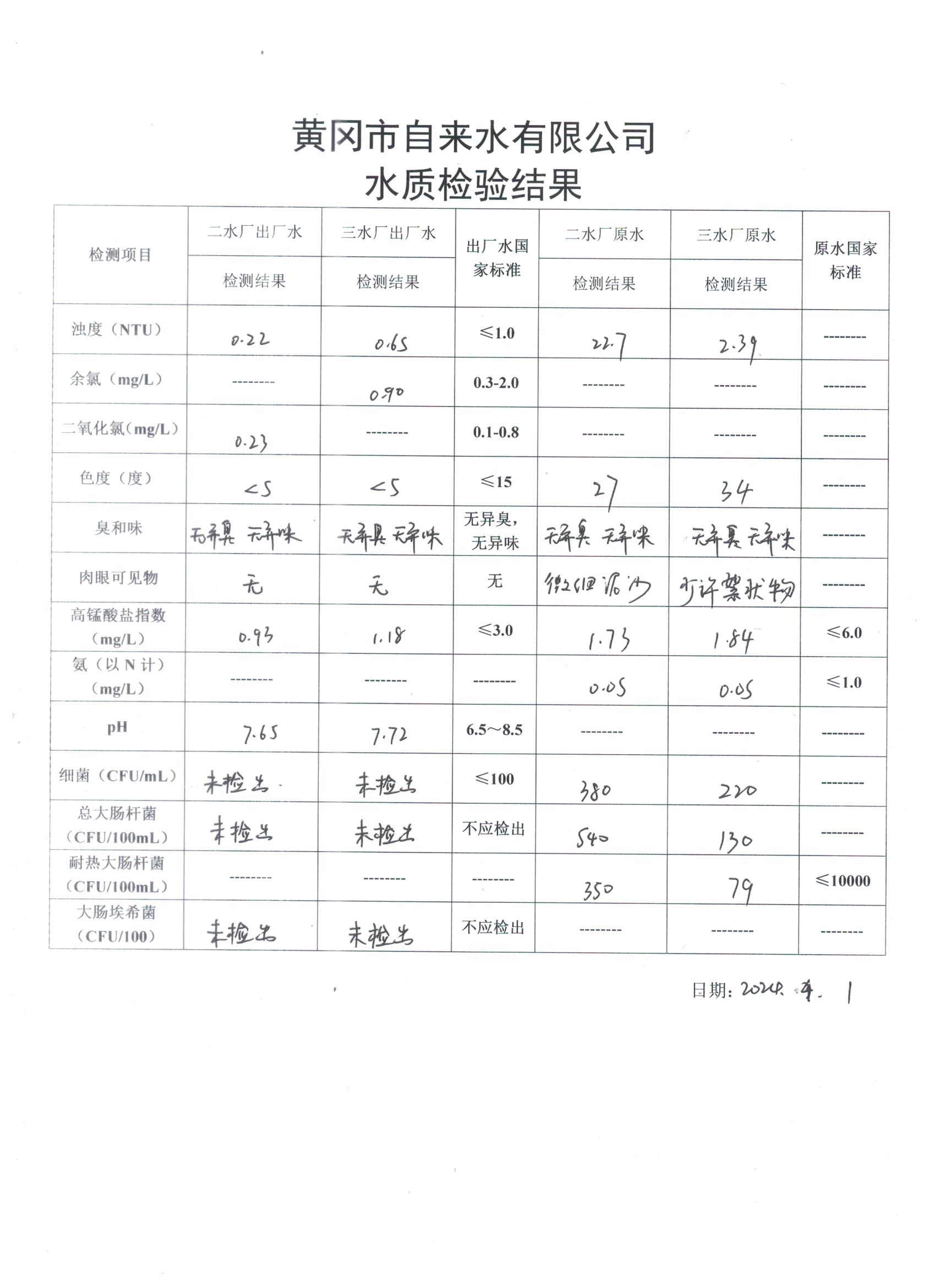 2024年4月1日水質檢驗日報表