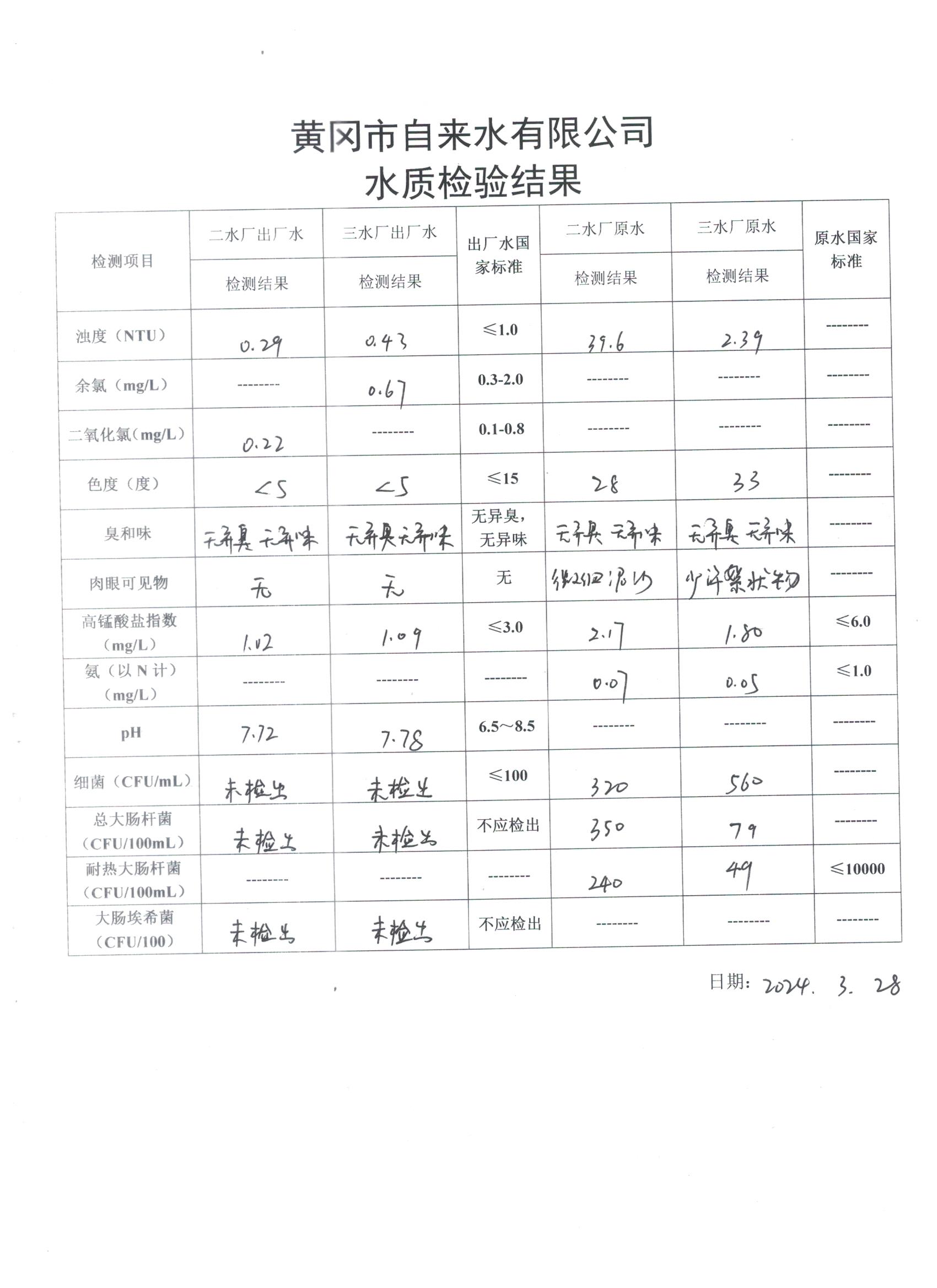 2024年3月28日水質(zhì)檢驗(yàn)日?qǐng)?bào)表