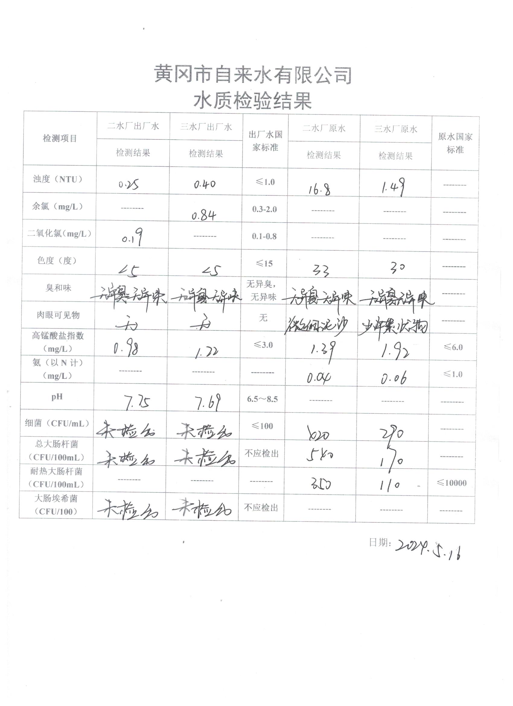 2024年5月16日水質(zhì)檢驗(yàn)日?qǐng)?bào)表