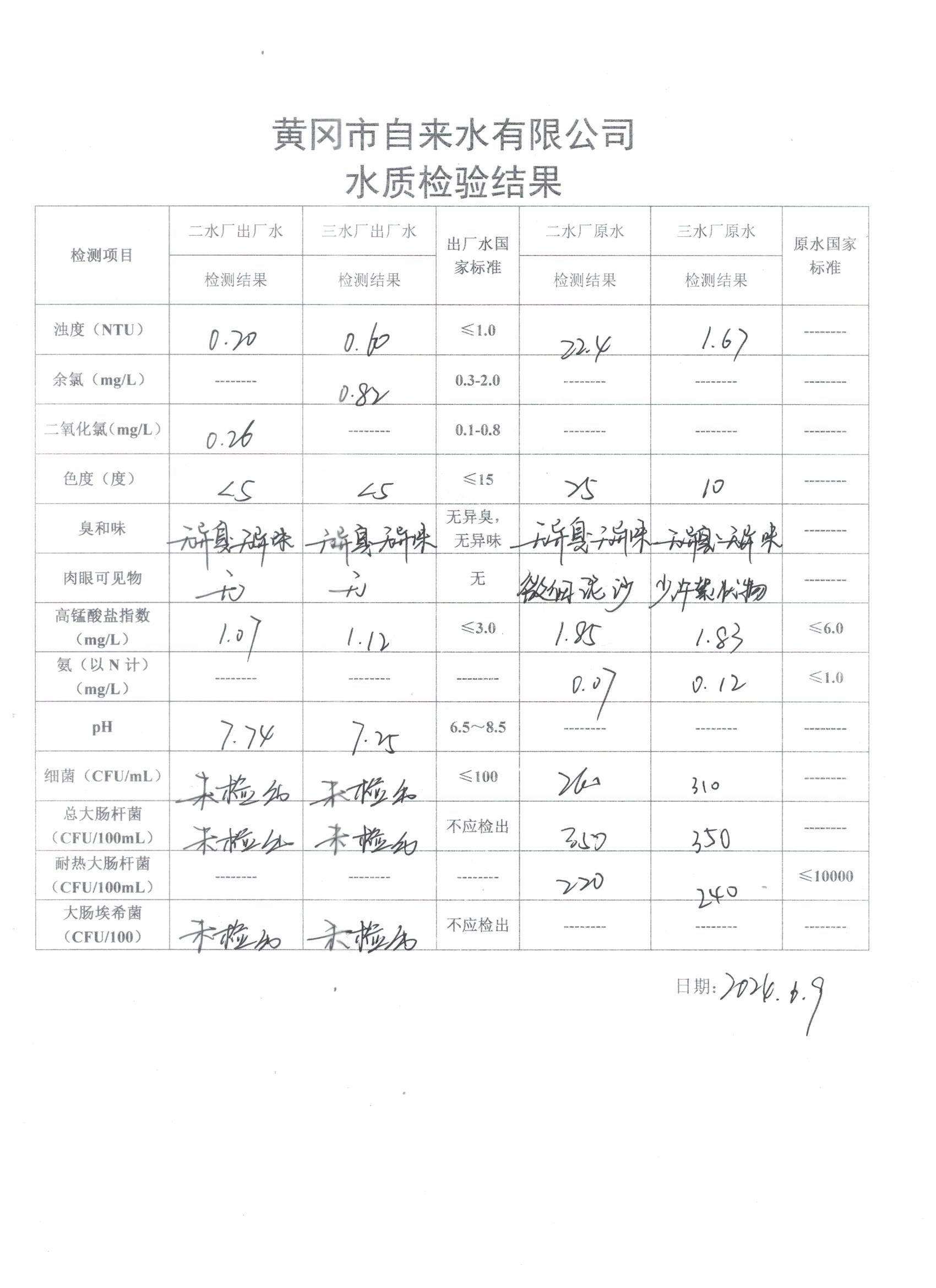 2024年6月9日水質(zhì)檢驗(yàn)日?qǐng)?bào)表