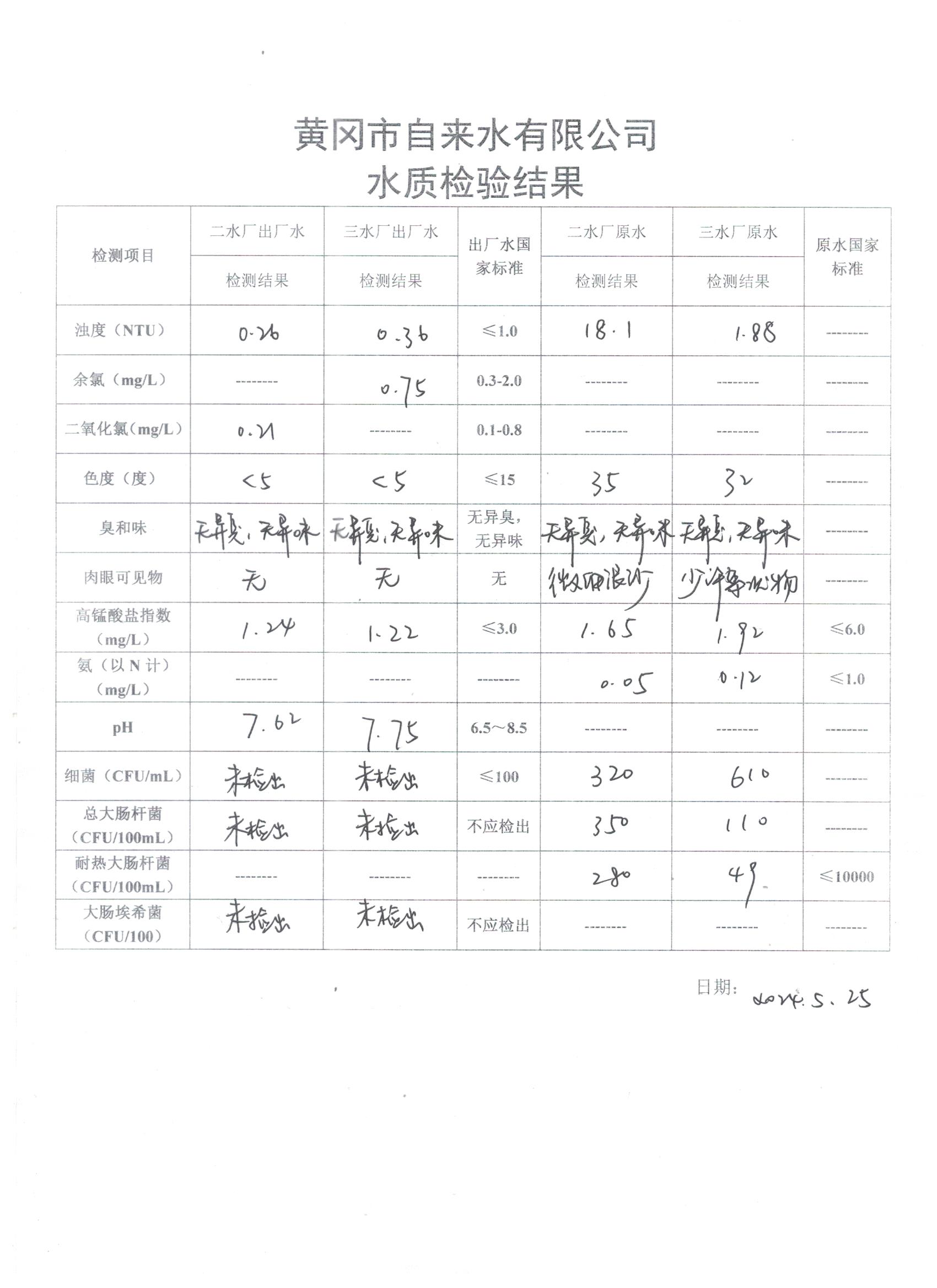 2024年5月25日水質(zhì)檢驗(yàn)日?qǐng)?bào)表
