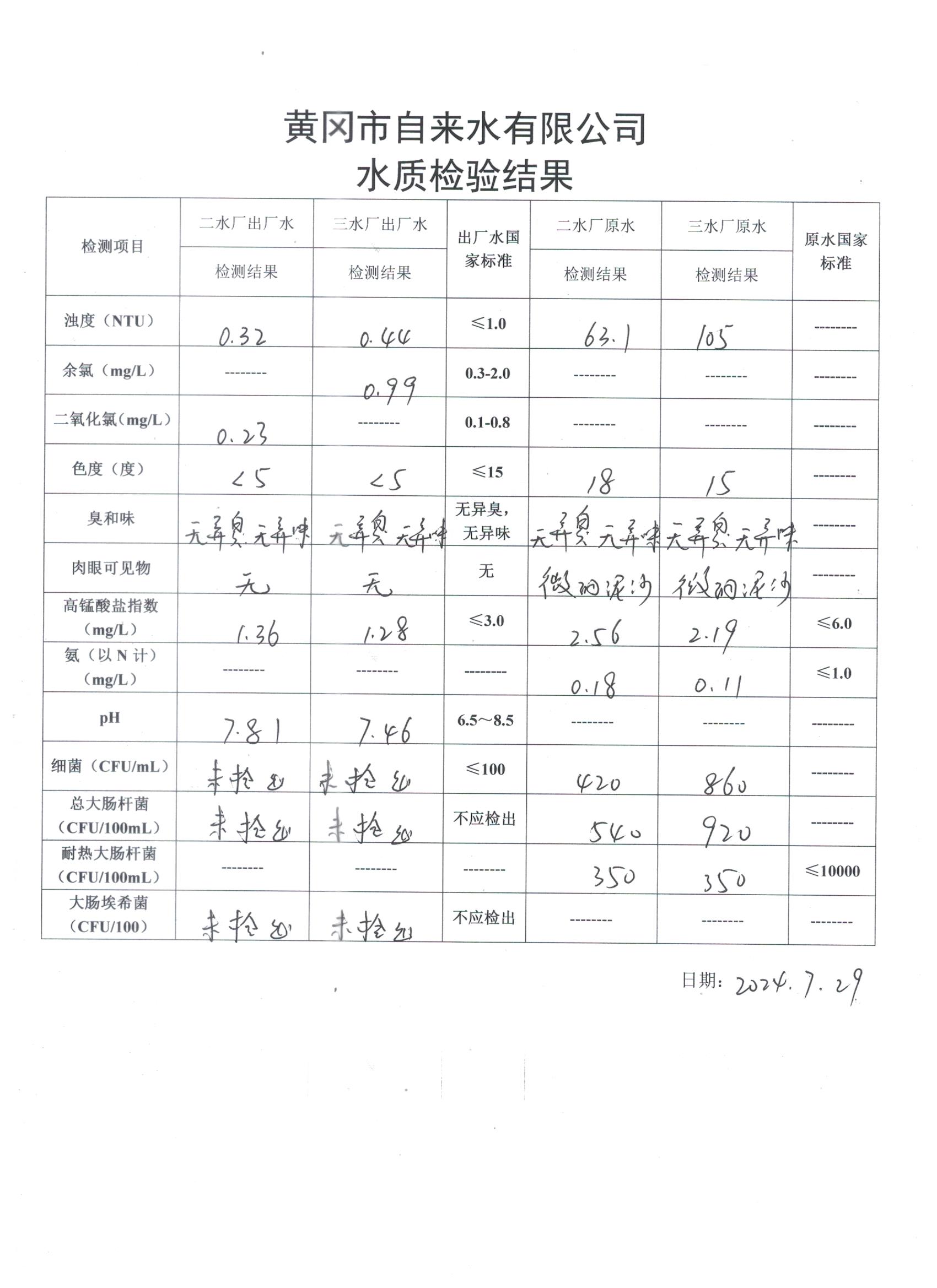 2024年7月29日水質(zhì)檢測日報(bào)表