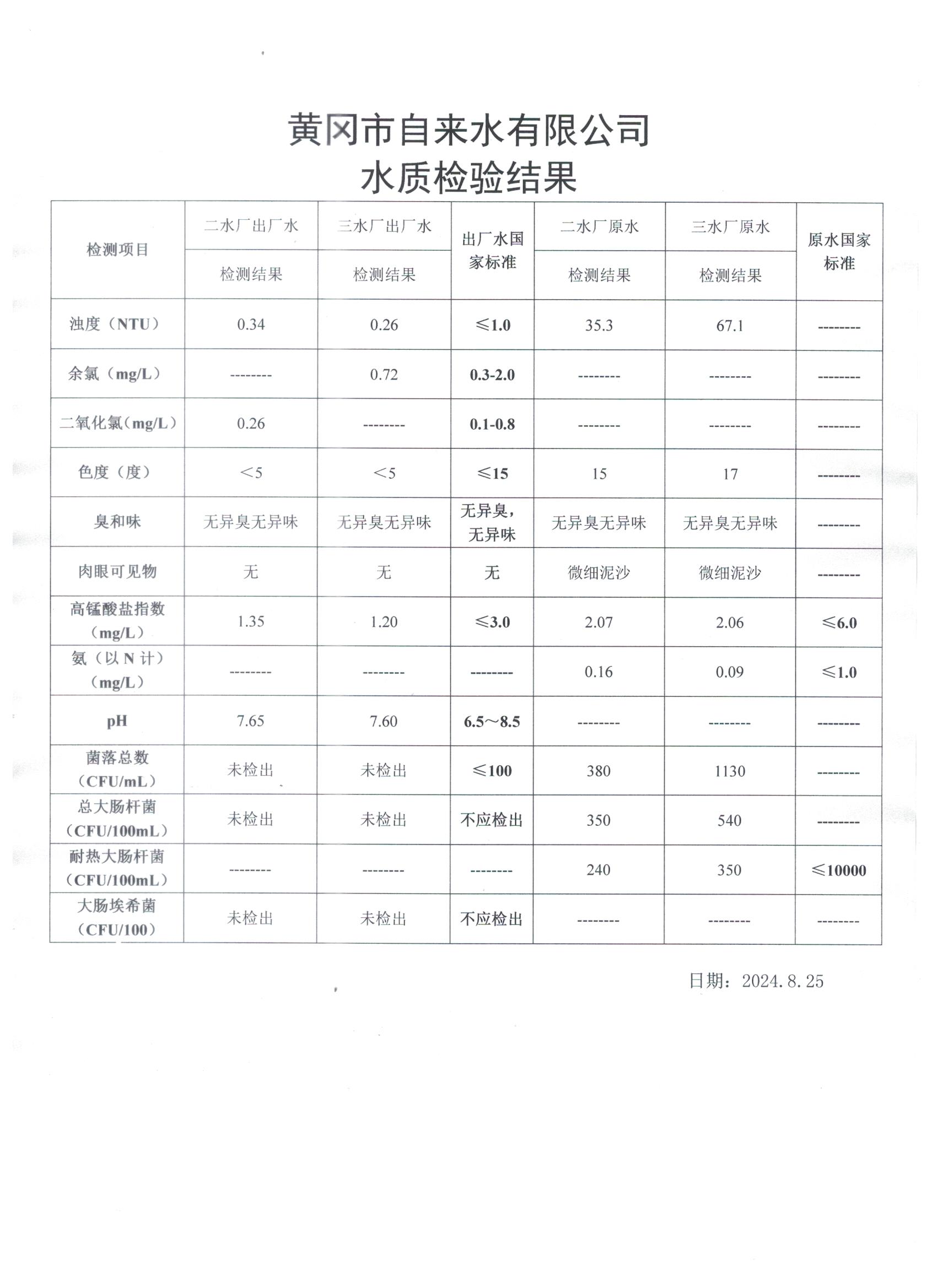 2024年8月25日水質(zhì)檢測日?qǐng)?bào)表