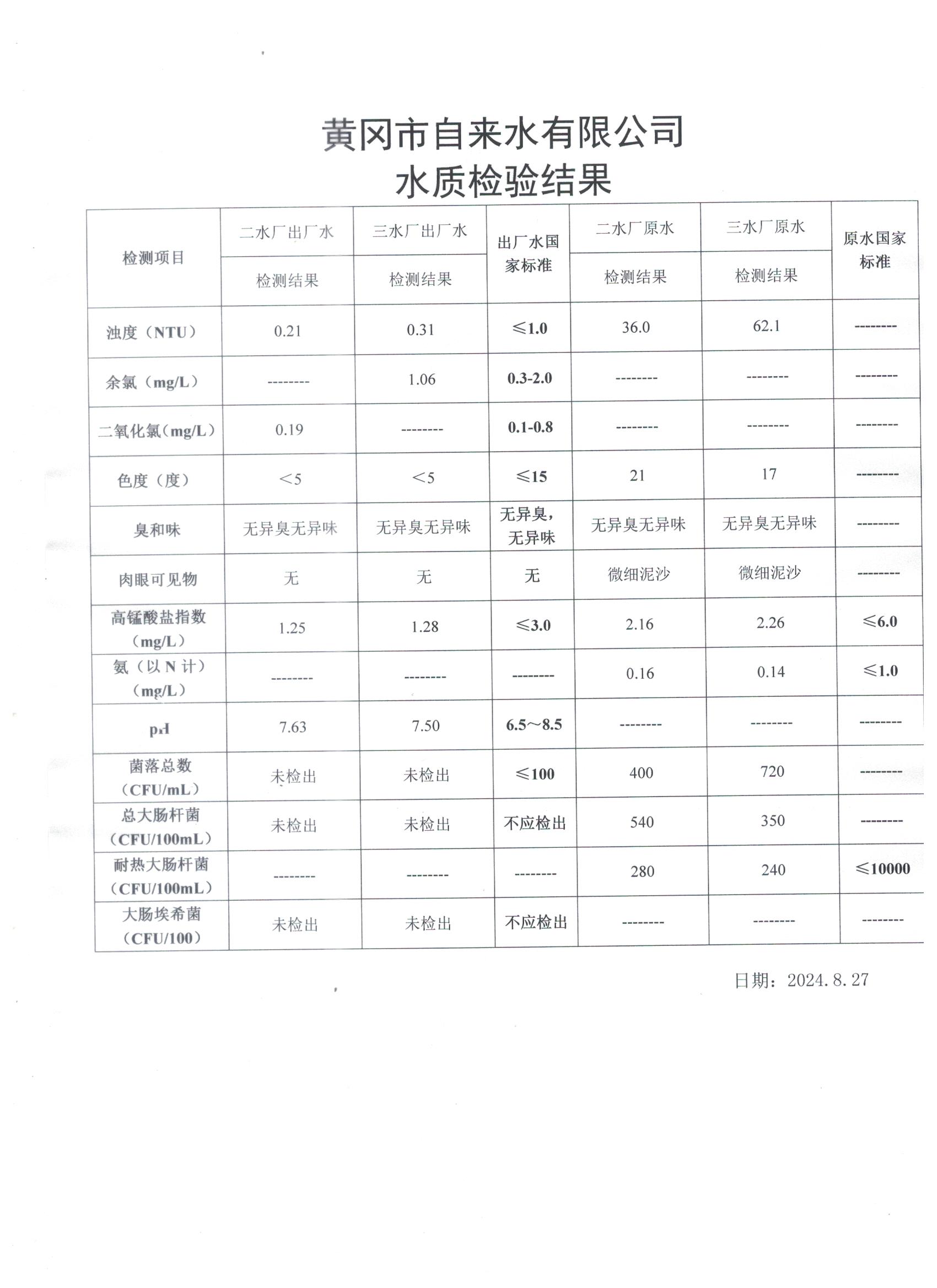 2024年8月27日水質(zhì)檢測(cè)日?qǐng)?bào)表
