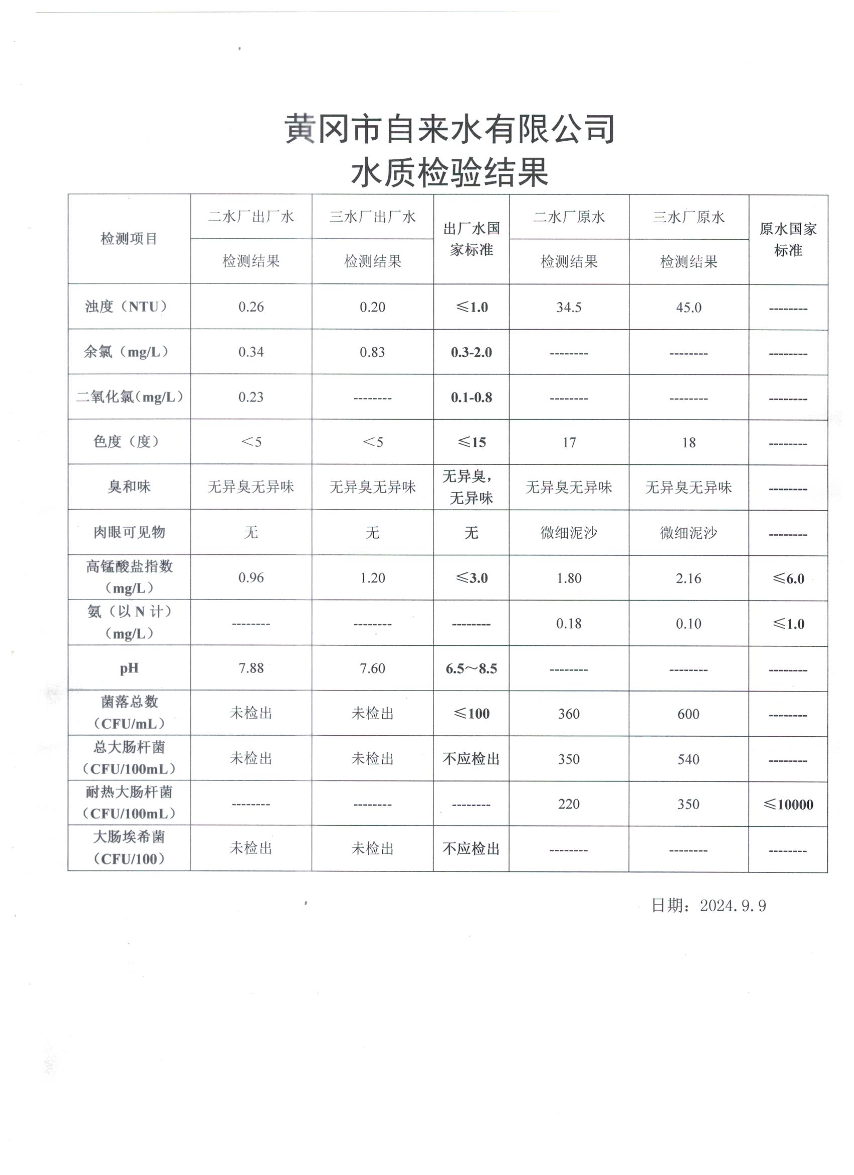 2024年9月9日水質檢測日報表