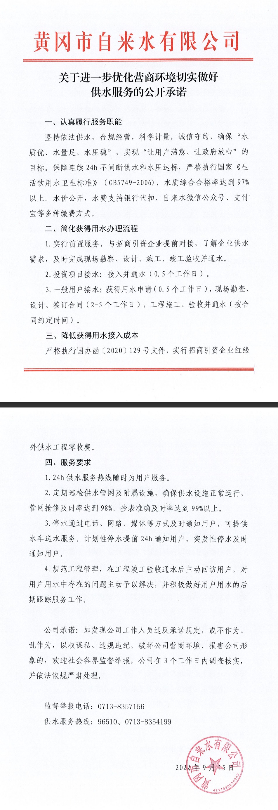 進一步優(yōu)化營商環(huán)境切實做好供水服務的公開承諾
