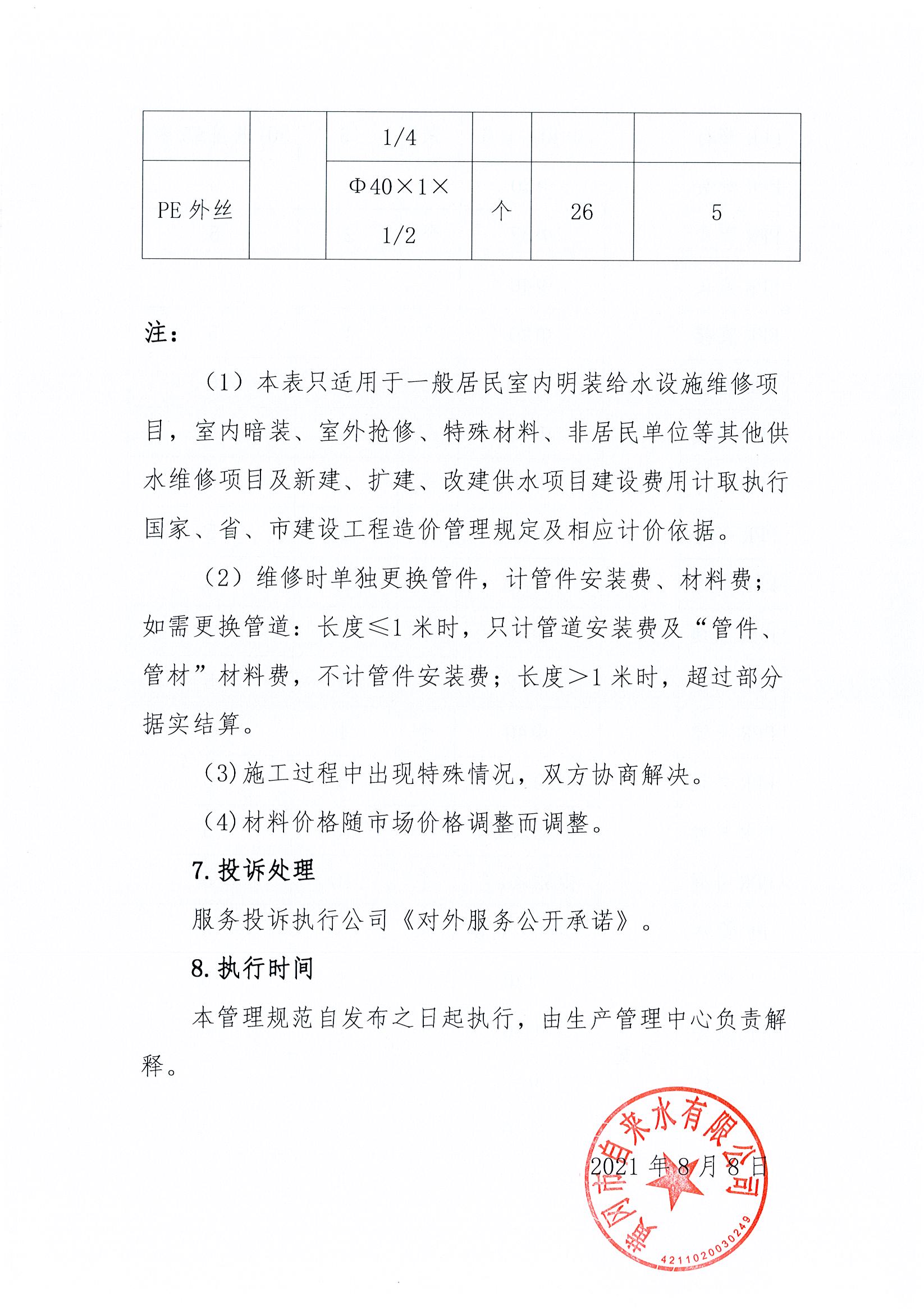 黃岡市自來水有限公司供水延伸有償服務規(guī)范